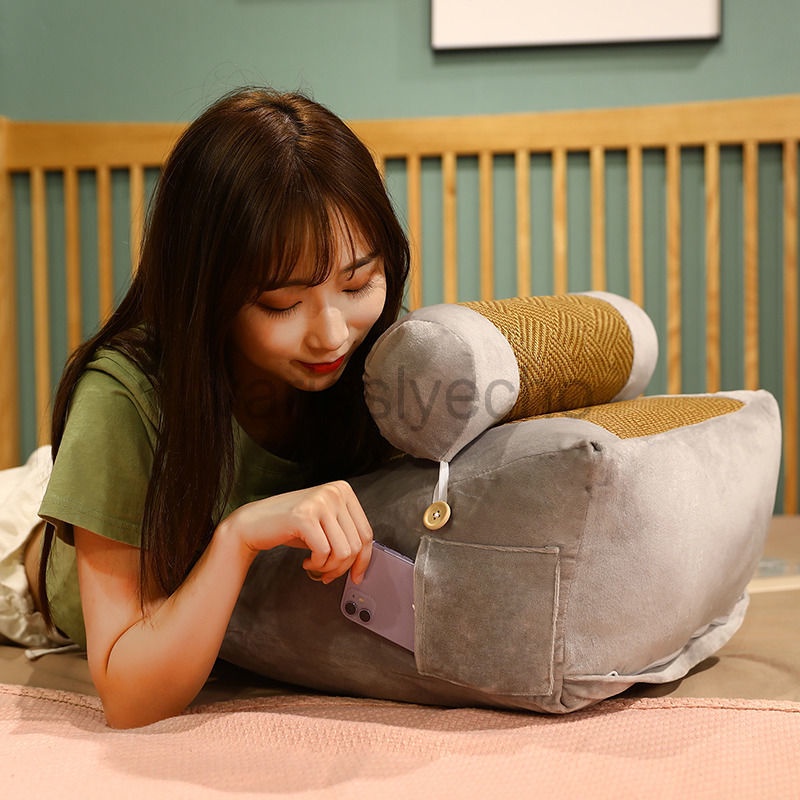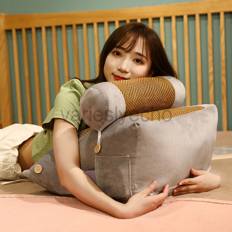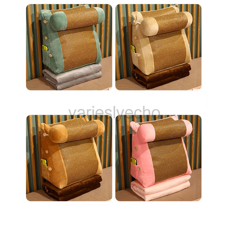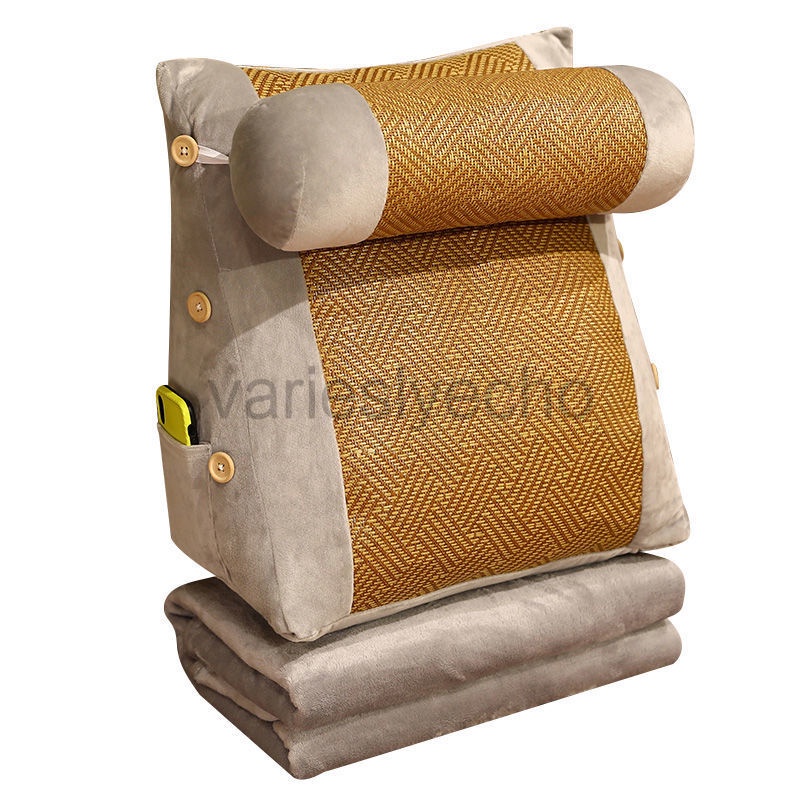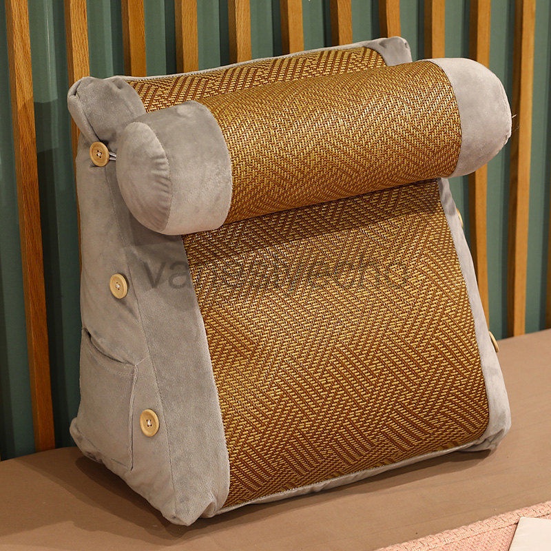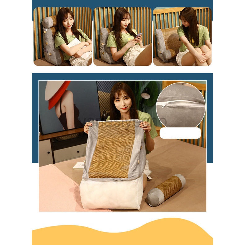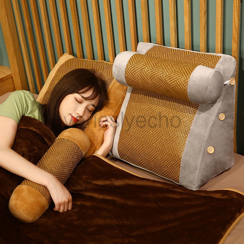 Wedge Shaped Back Support Pillow, Rattan Mat Cooling Bed Rest Cushion for Reading, Gaming, Watching - with Adjustable Neck Pillow