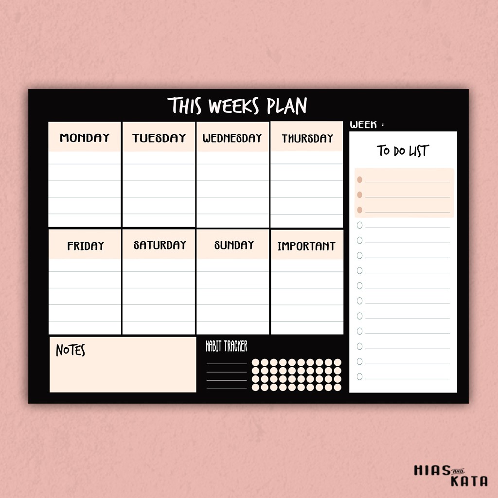 Weekly Planner wall Week Plan with Habit Tracker, notes & to do list size A3