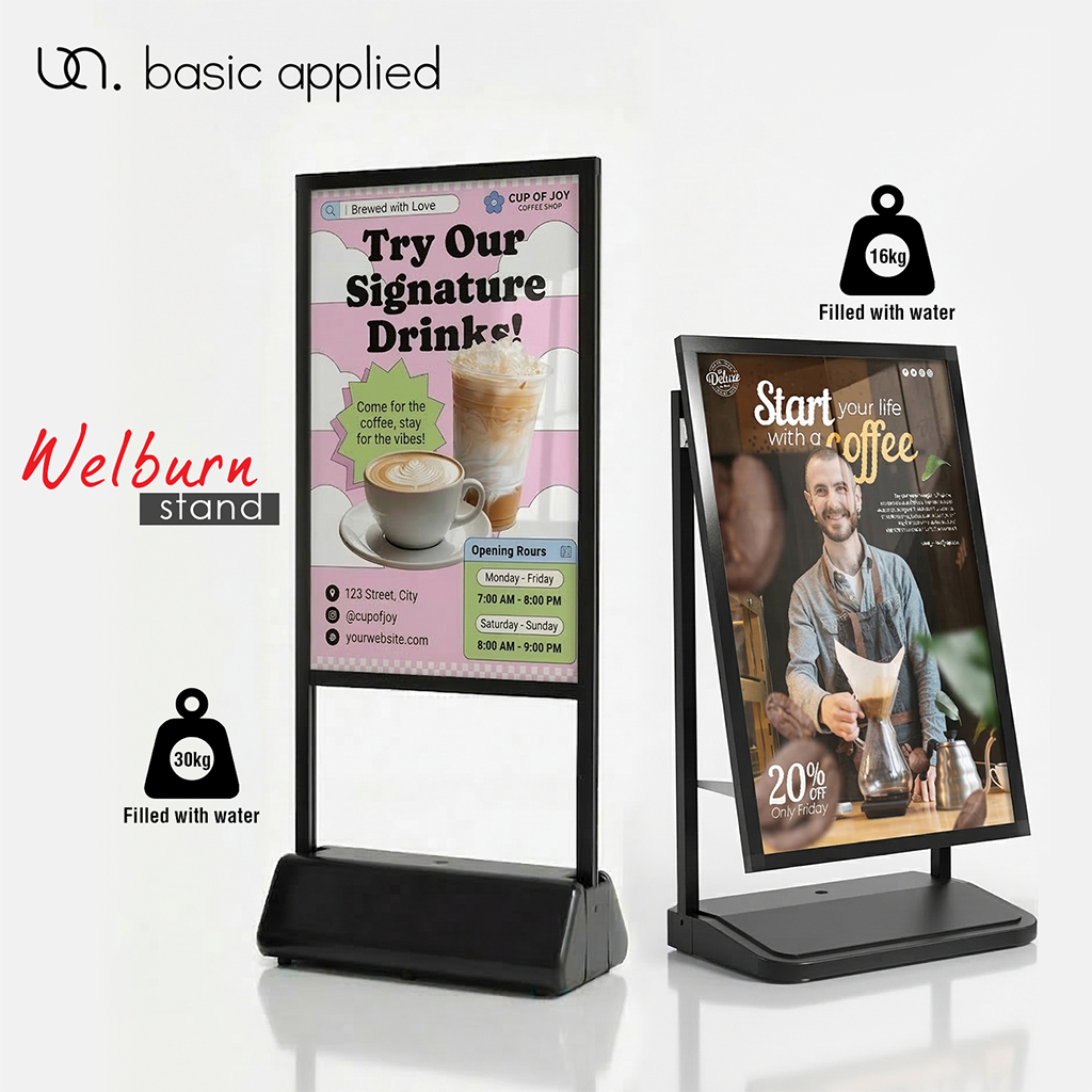 Welburn Outdoor Waterbase Poster Stand | Outdoor Anti-Toppled Foamboard display stand | Heavy Anti-Wind Poster Display