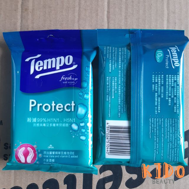 Wet tissueT zoneHidden Tempo Protect Wet Wipes 10pcs (10 Sheets) - Tempo Wet Wipes