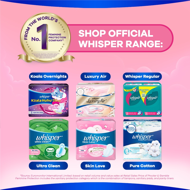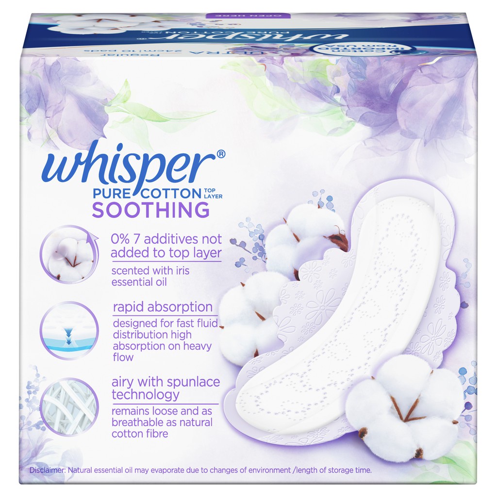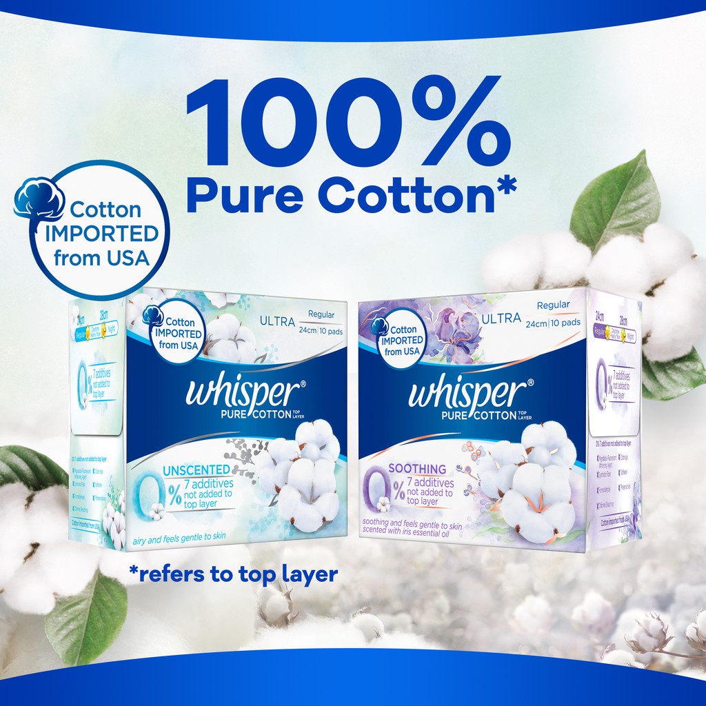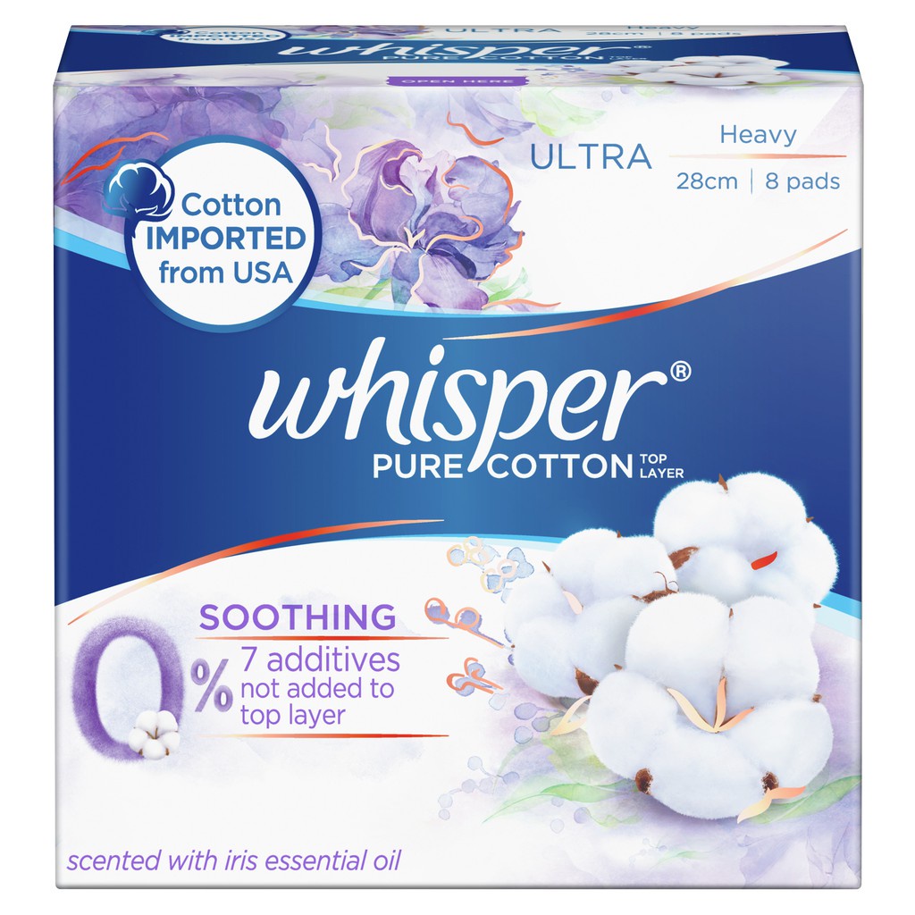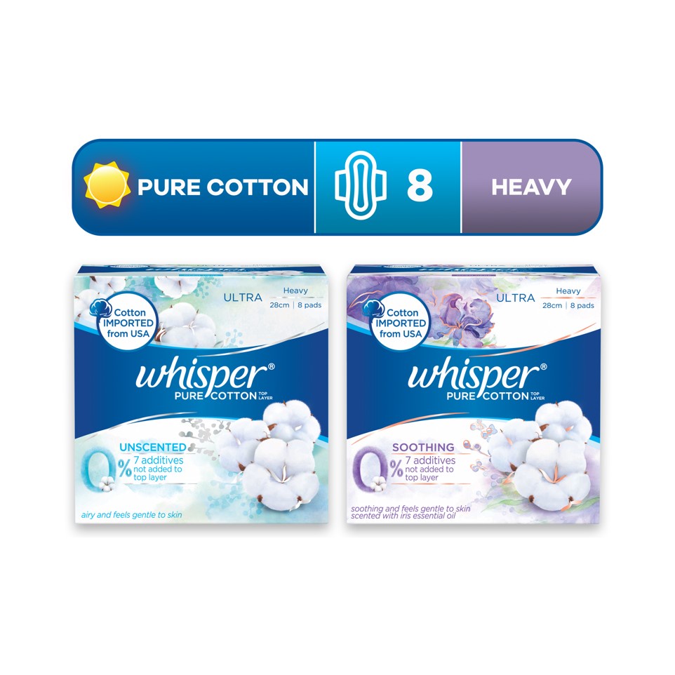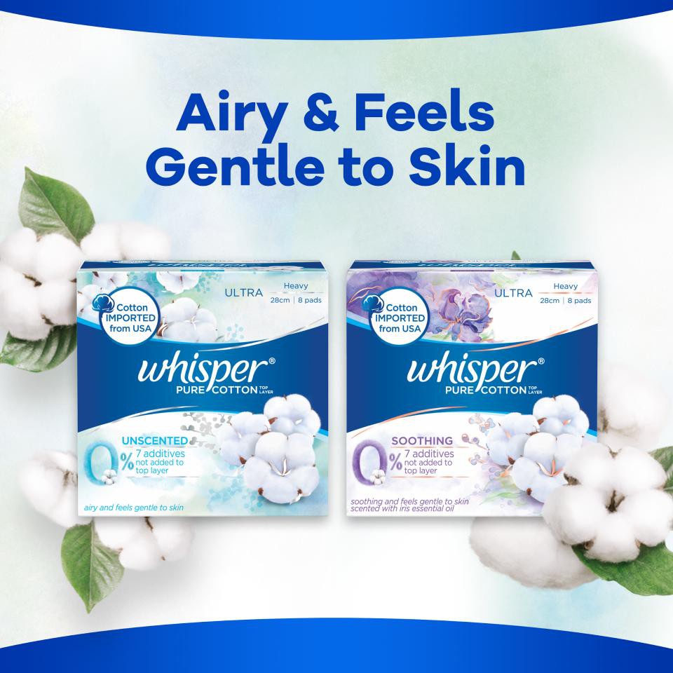 Whisper Pure Cotton Thin Sanitary Pads Wing 28cm 8pc