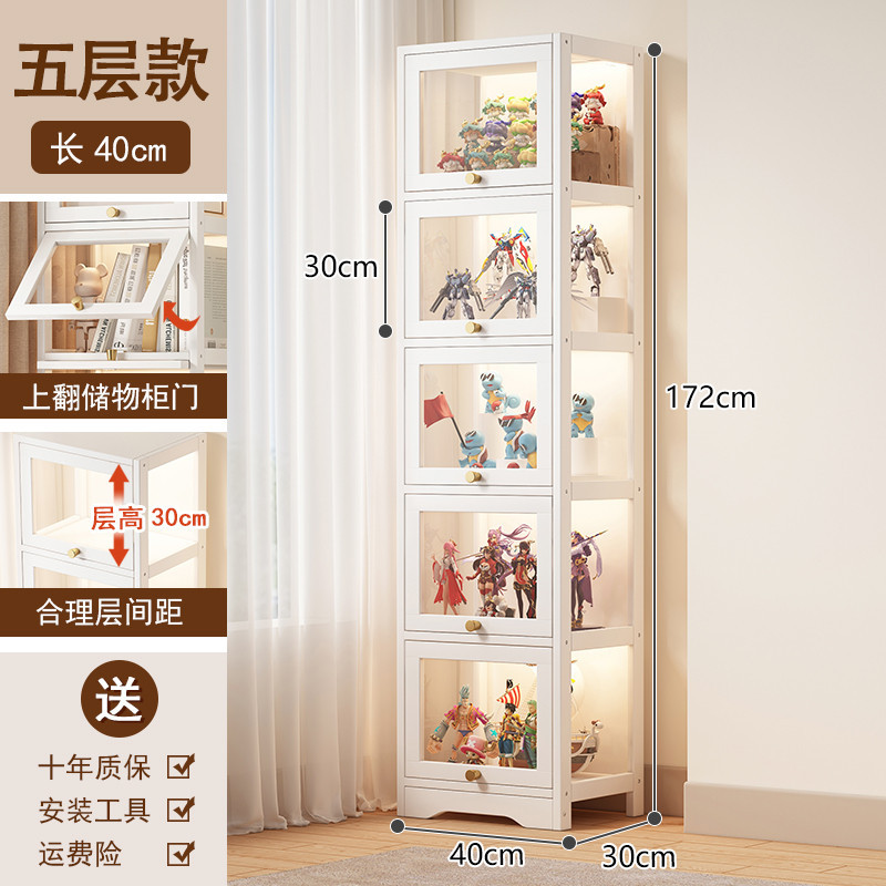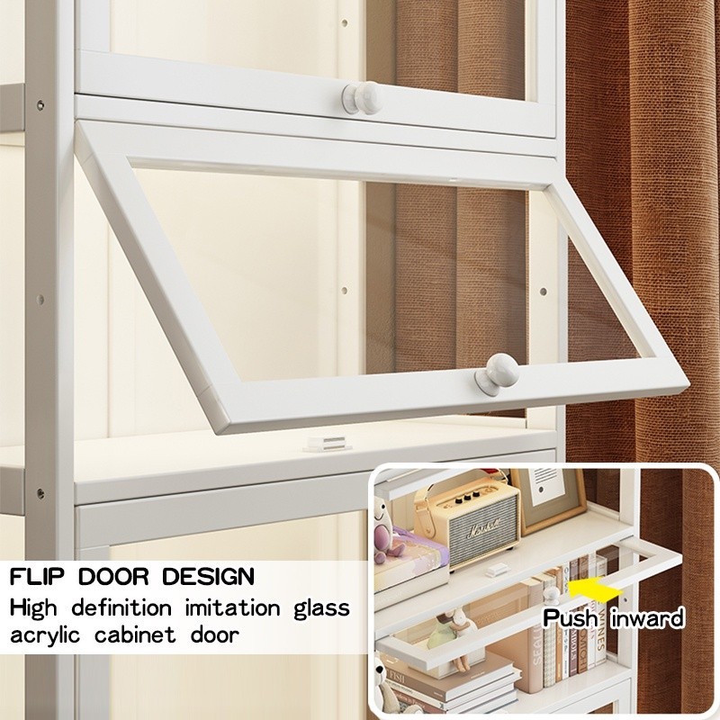 White Display Cabinet Bookshelf Cabinet with Flip Door LEGO / Toys Display Shelf Home Storage Cabinet Book Shelf Model Show Cabinet 3-sided Transparent