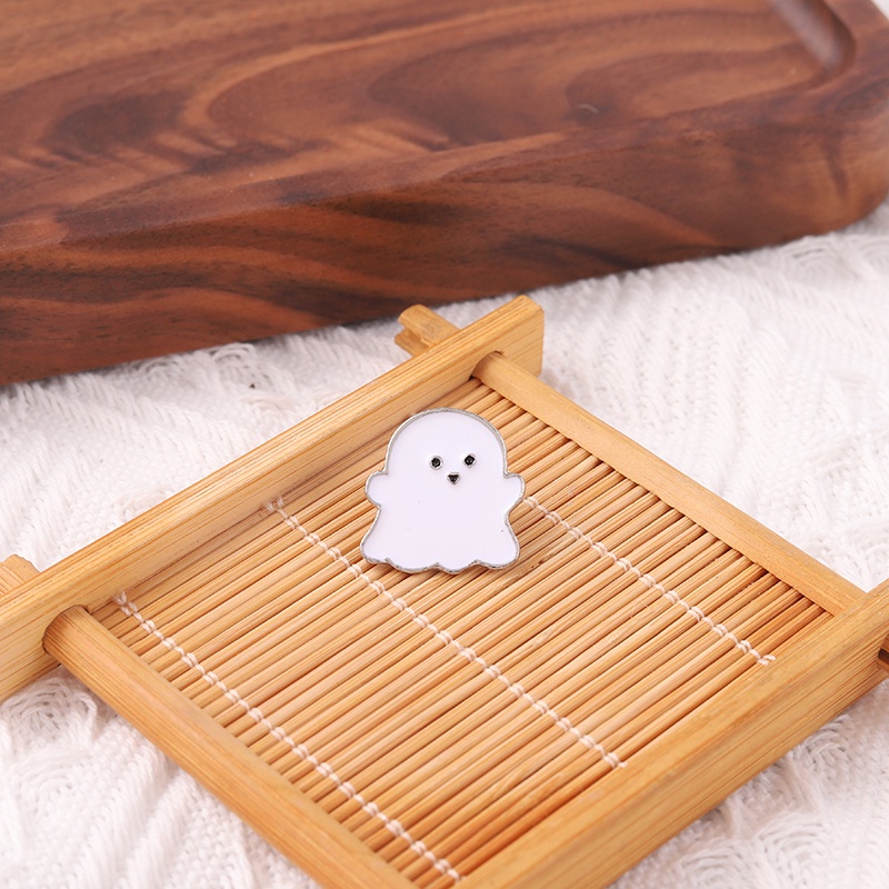White Ghost Metal Enamel Pin Cute Brooch Clothes Lapel Pin Badges Punk Halloween Party Jewelry Gift Kids Women Friends