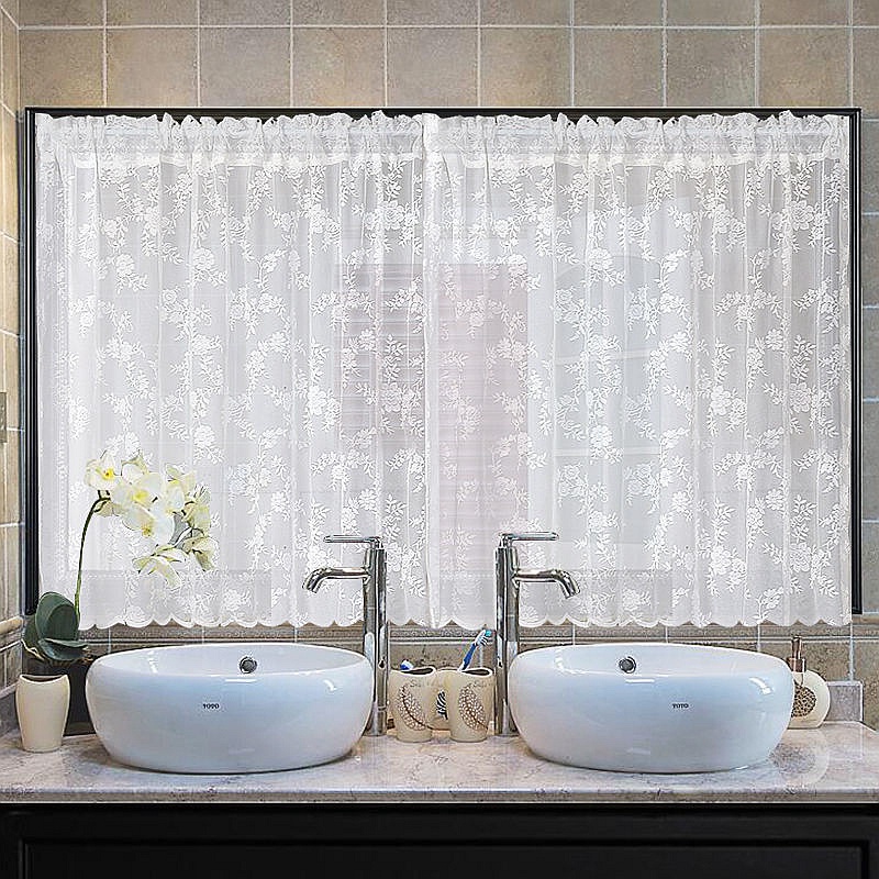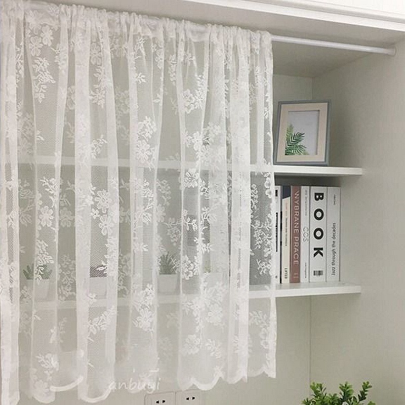White Lace Windows Valance Romantic Embroidery Floral Cafe Kitchen Short Curtains Semi Sheer Elegant Lace Valances Window Door Cabinets Decor