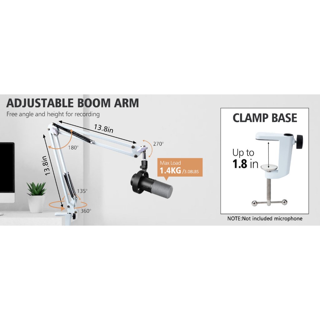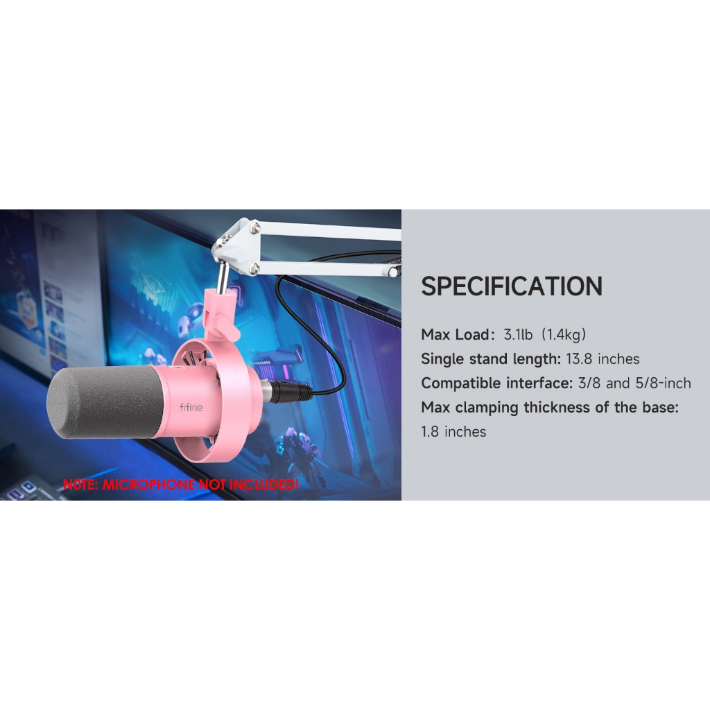 White Mic Boom Arm Compatible with FIFINE K688 Recording XLR/USB Microphone - FIFINE K688 Boom Arm White Mic Stand Microphone Arm, K688 Mic Arm for Streaming Gaming Mic