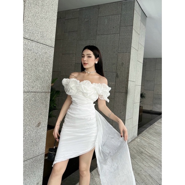 White Red Rose Flat Silk Dress Open Shoulder Open Shoulder Open / Puff, Short Skirt Hugging body Diagonal With Luxury Fashion To Party Events