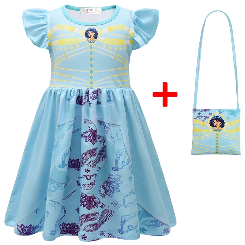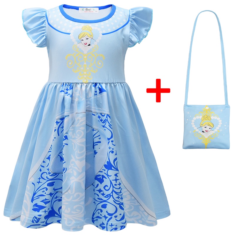 Wholesale Disney Princess Dress Elsa Anna Ariel Jasmine Rapunzel Print Children Clothing Girls Birthday Party Dress And Bag