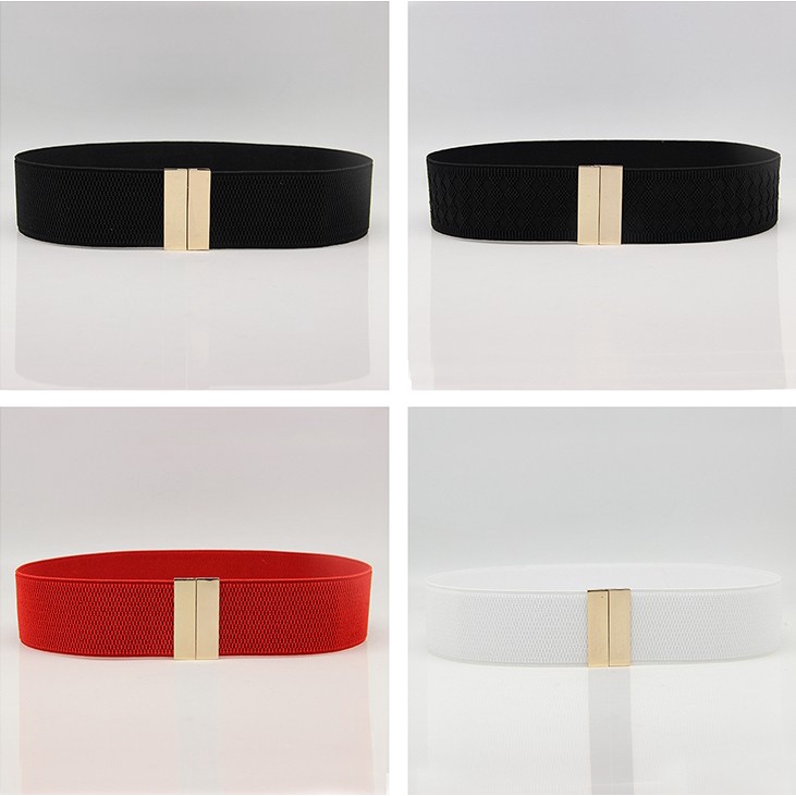 Wide Elastic Corset Belt - Adjustable Metal Buckle & Stretch Lightweight Waistband for Dresses/Skirts
