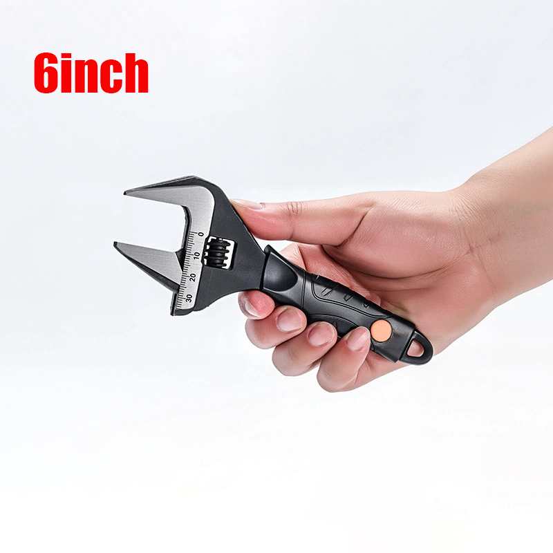 Wide Mouth Adjustable Wrench Set, 6-Inch & 10-Inch Wrenches, Plumbing Adjustable Wrench with Soft Grip, Wide Jaw Black Oxide Wrench With Cushion Grip, for Home, Garage, Workshop