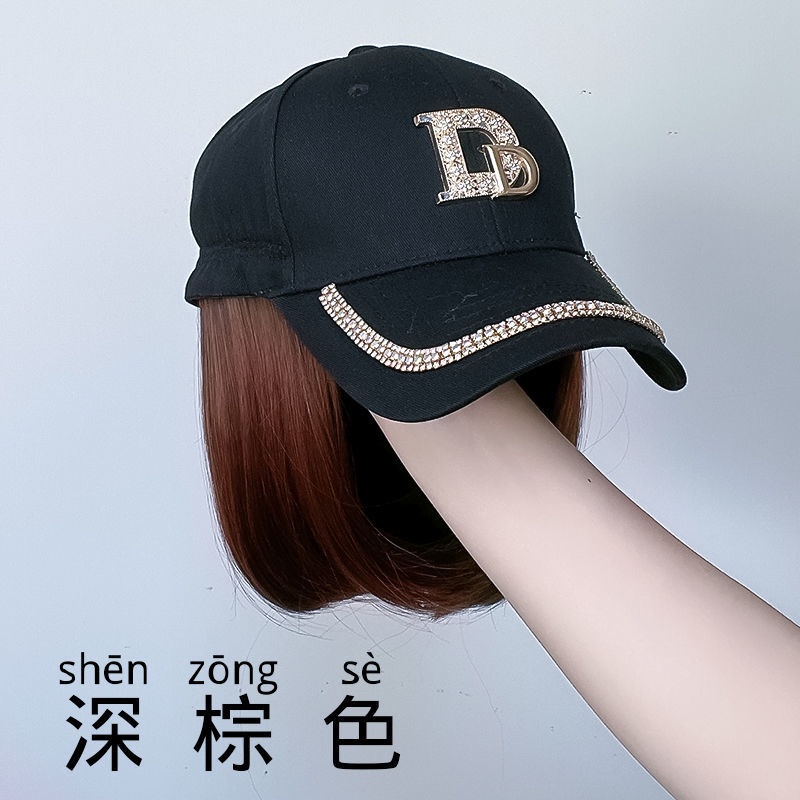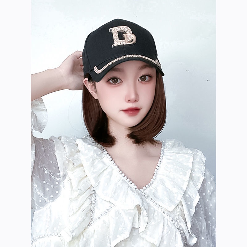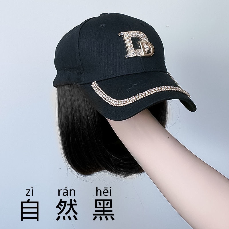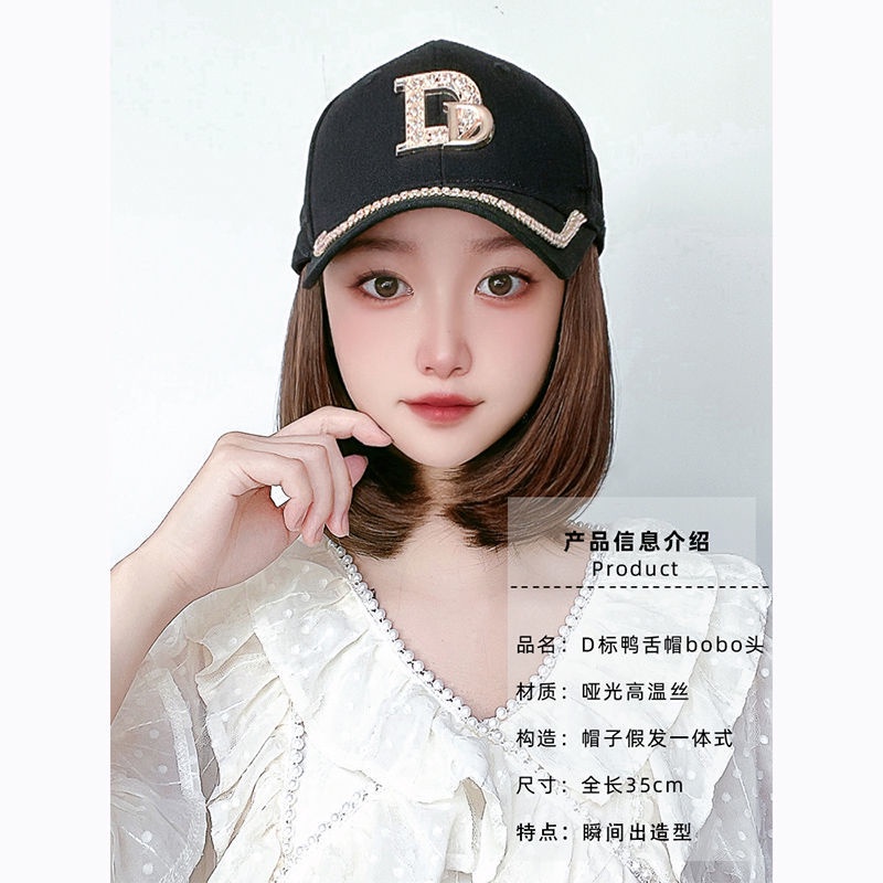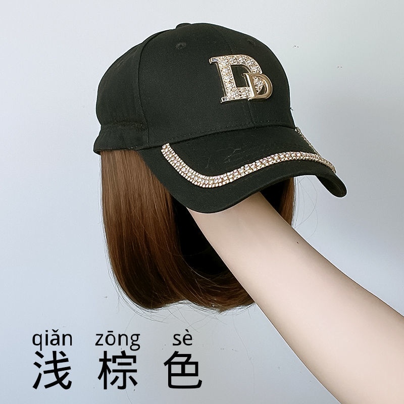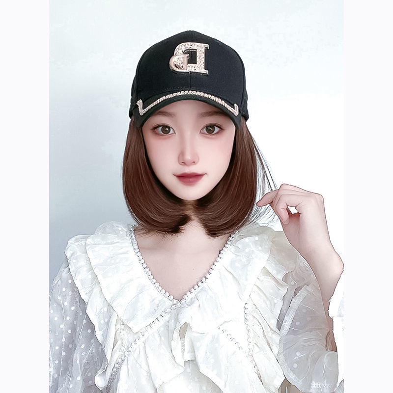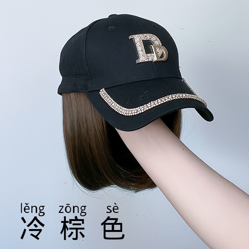 Wig Female Short Hair Hat One With Diamond Cap Korean Version Trendy Fashion Bob Head Full Headgear