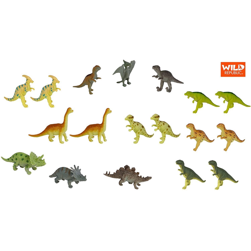 Wild Republic Dinosaur Animal Figurines Tube, Dino Toys, T Rex, Triceratops, Velociraptor, Dilophosaurus, Stegosaurus