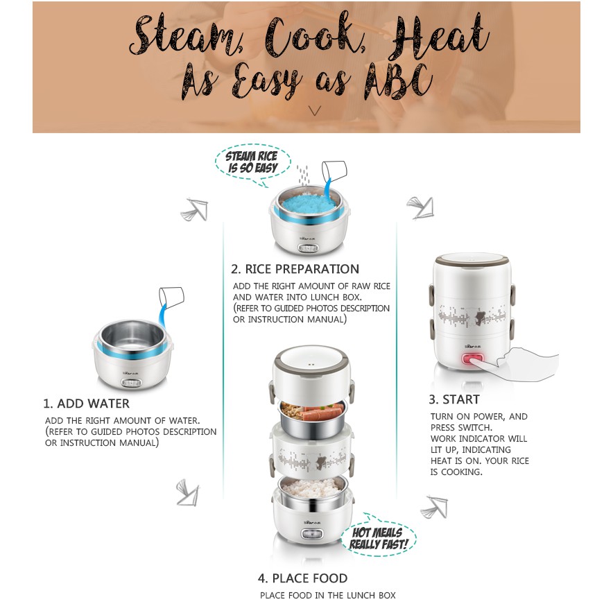 Bear Lunch box 4 in1 Heating 2.0L Electric Multi Pot/ Mini Rice Cooker (DFH-S2358)