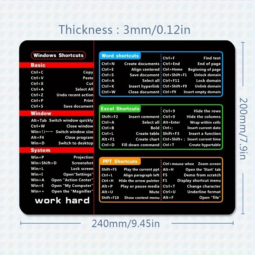 Windows Shortcut Mouse Pad, Computer Function Shortcut Mouse Pad, Non-Slip Rubber Mouse Pad, Office Software Office For Word Excel PPT Shortcut Mouse Pad, Mouse Pad With ed Edges