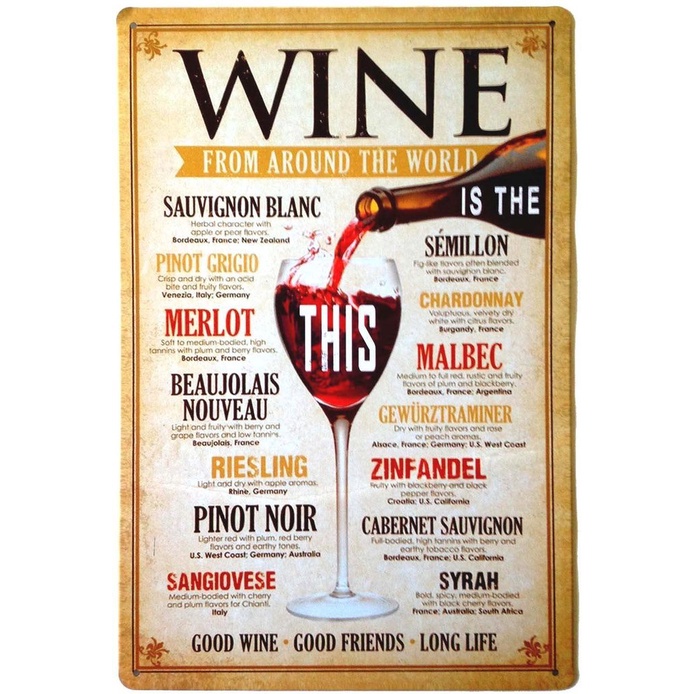 Wine from Around The World Drinking Distressed Metal Bar Wall Plaque Retro Decor Poster Vintage Tin Sign