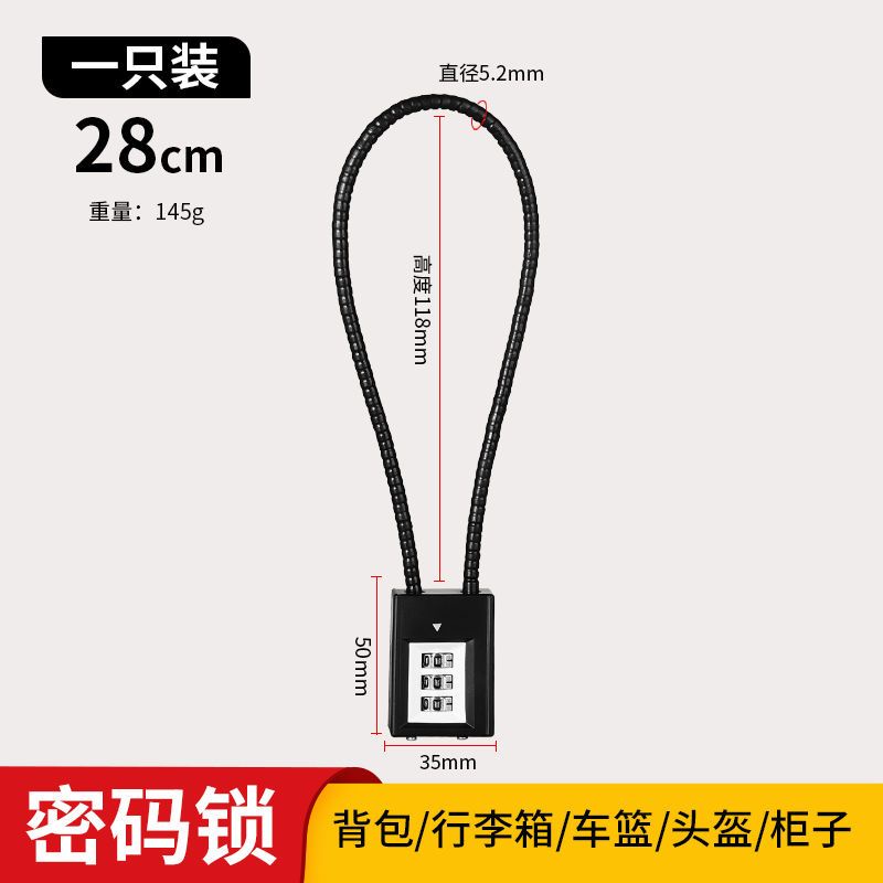Wire rope padlock anti-theft helmet lock steel cable padlock cabinet long padlock cabinet file cabinet steel wire password padlock ZC6B