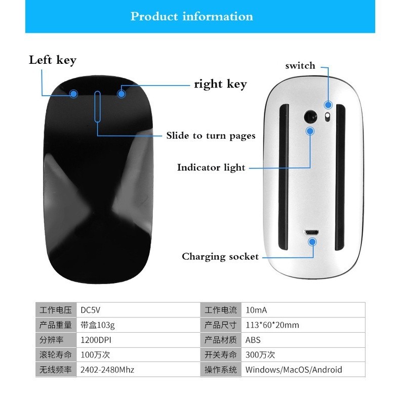 Wireless Bluetooth & 2.4GHz Rechargeable Mouse Silent Multi Touch Mice Ultra-thin Mice For MacBook Tablet CP Laptop