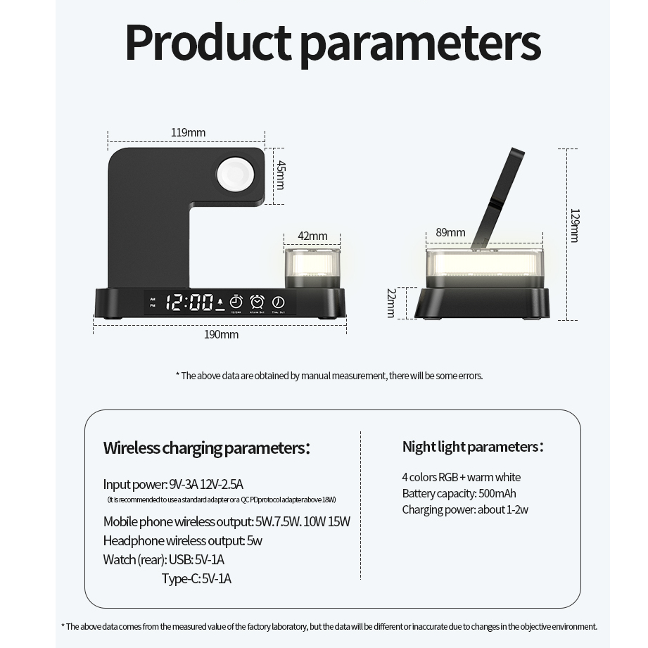 Wireless Charger With Alarm Clock Fast Charging Dock Station