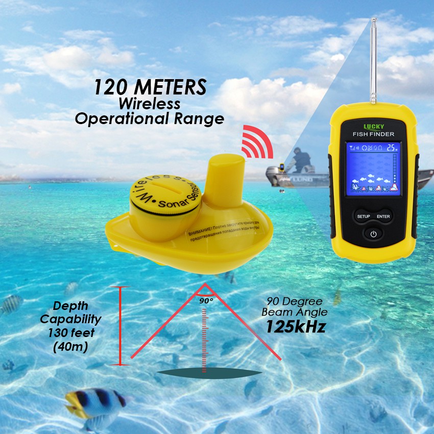 Wireless Fish Finder Sonar, TN/ Anti-UV LCD Display Fishfinder Backlight for Night Fishing, Turbid Water Reservoir Sea River lake Boat Kayak Ice