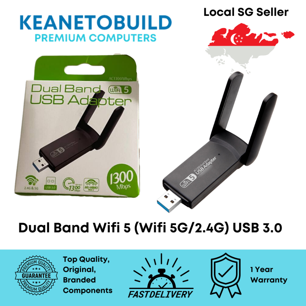 Wireless Internet Wifi USB 3.0 Adapter with Antenna AC1300 WiFi 5 1300Mbps 2.4G 5G Dual Band WiFi 5 Network WiFi Dongle