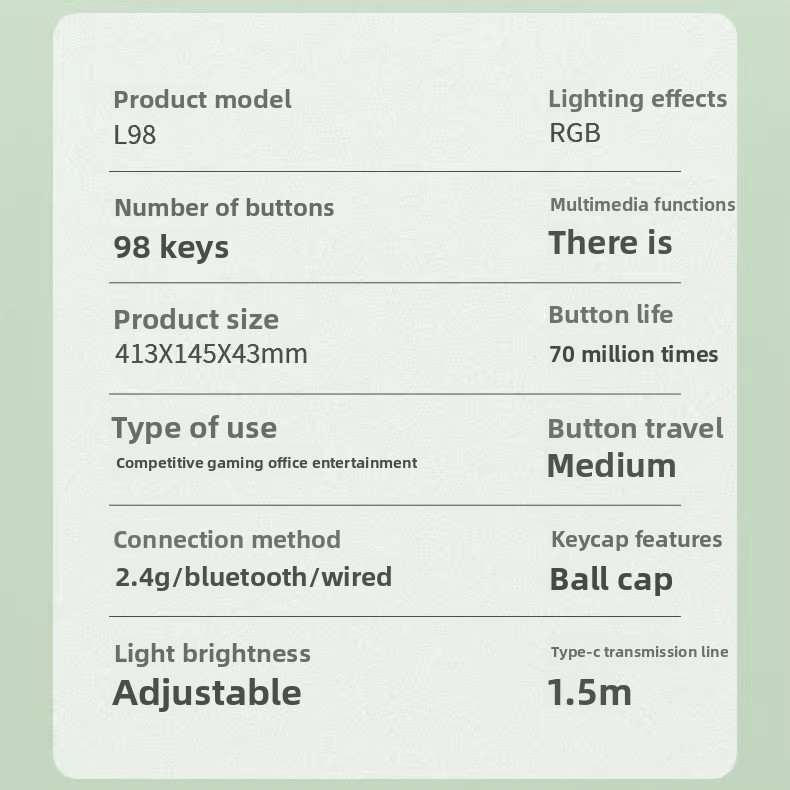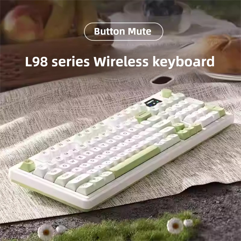Wireless L98 Gaming Keyboard Bluetooth Type-C Rechargeable Silent Green Ergonomic RGB light numeric keypad Membrane Keyboard goojodoq mechanical keyboard feeling logitech keyboard