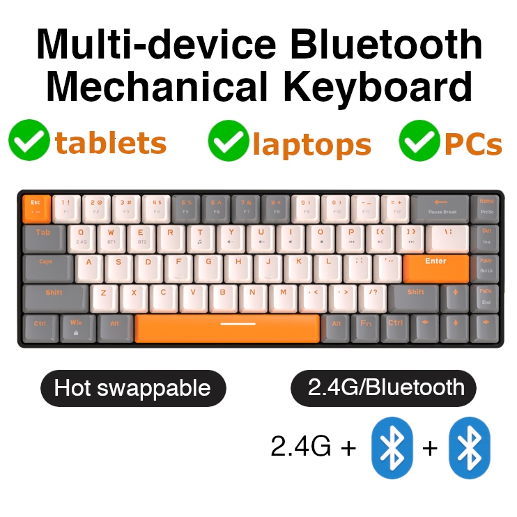 Wireless Mechanical Keyboard, Hot Swappable, Bluetooth 5.0/2.4GHz with Receiver, Compact 68-Key [Free Batteries]