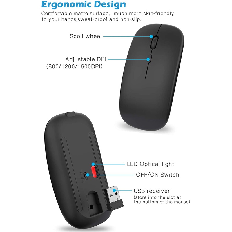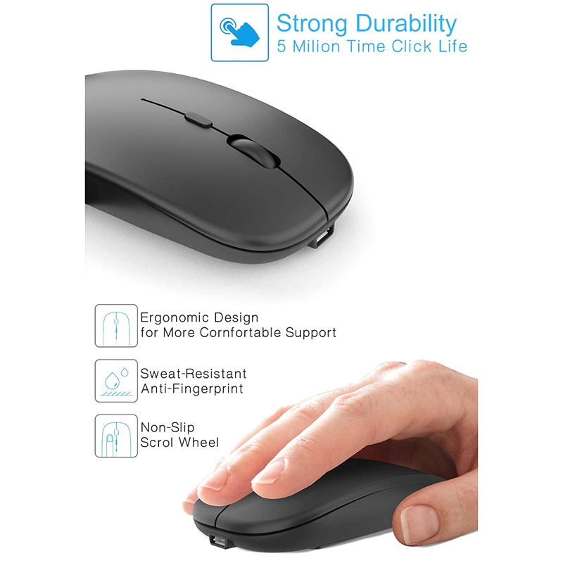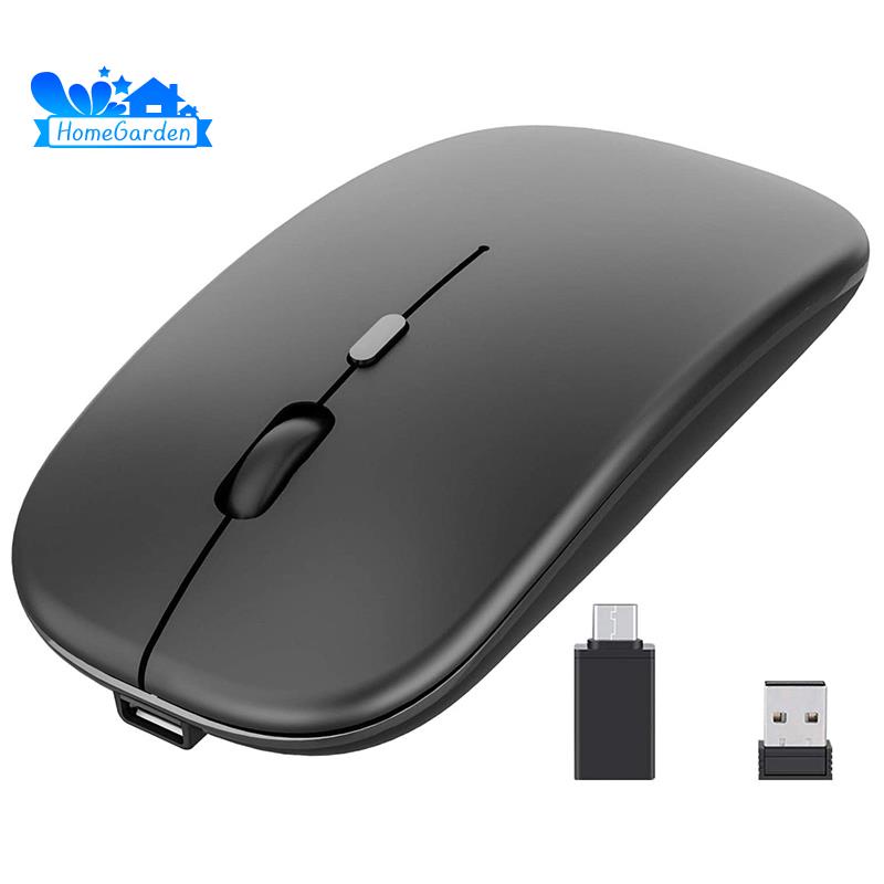 Wireless Mouse Rechargable,2.4G Ultra Silent Optical Mouse with USB and Type-C Receiver, for Laptop, (Black)
