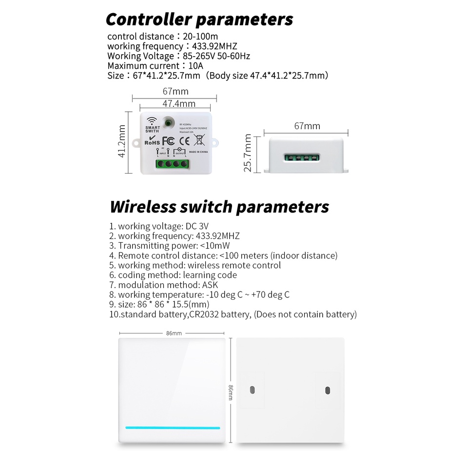 Wireless Switch RF 433Mhz Smart switch Remote Control switch