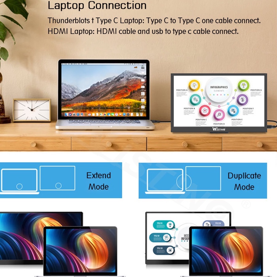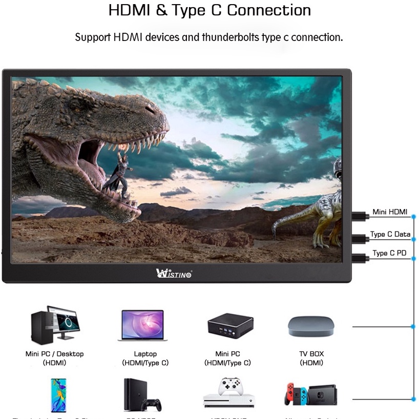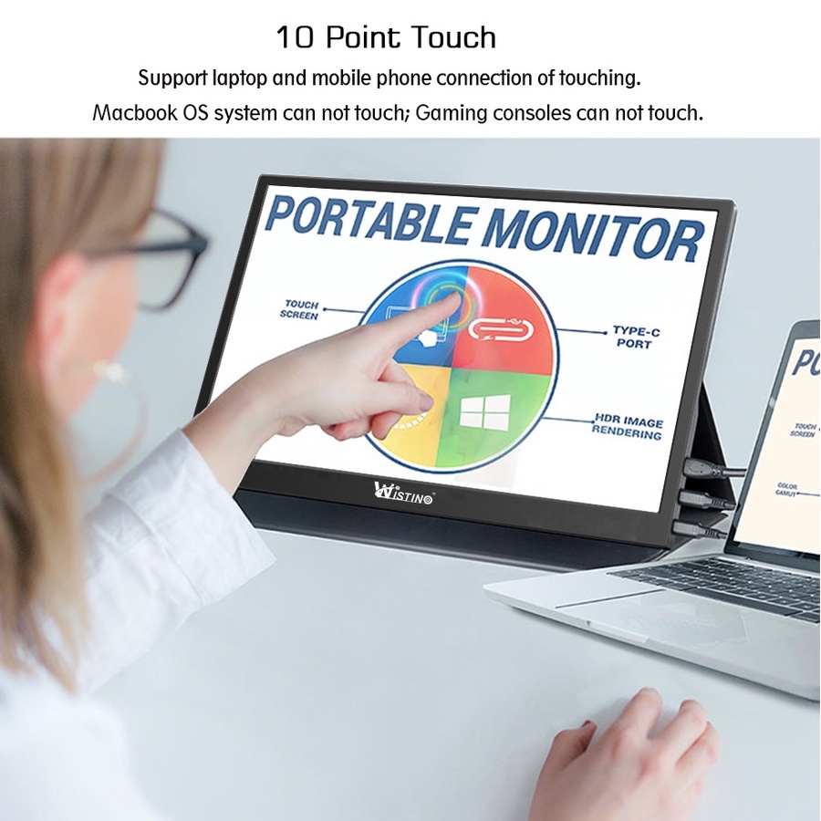 Wistino 15.6inch Touchscreen Portable Monitor 1080P Compatible HDMI Second Monitor For Laptop&Gaming