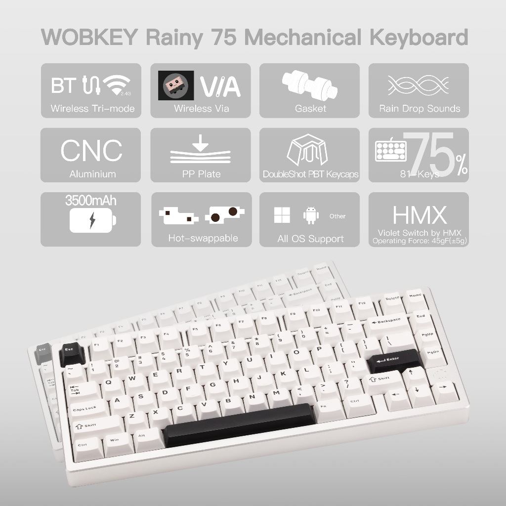 Wob | Rainy75 | Customized Gaming Mechanical Keyboard | 75%Layout | CNC Aluminum Case | Hot Swappable