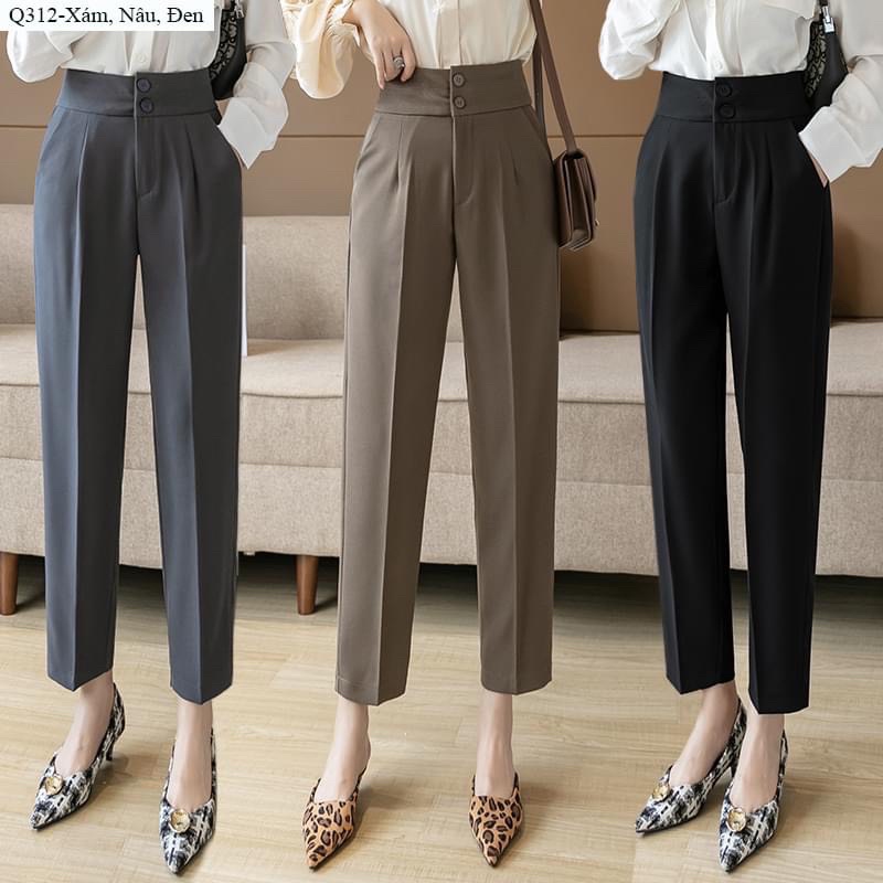 Women's Baggy Pants with Elastic Waist at the Back, High Waist Design with 2 Straight Buttons, Minxinh Long Straight-Leg Office Fabric Baggy Pants Code Qb158