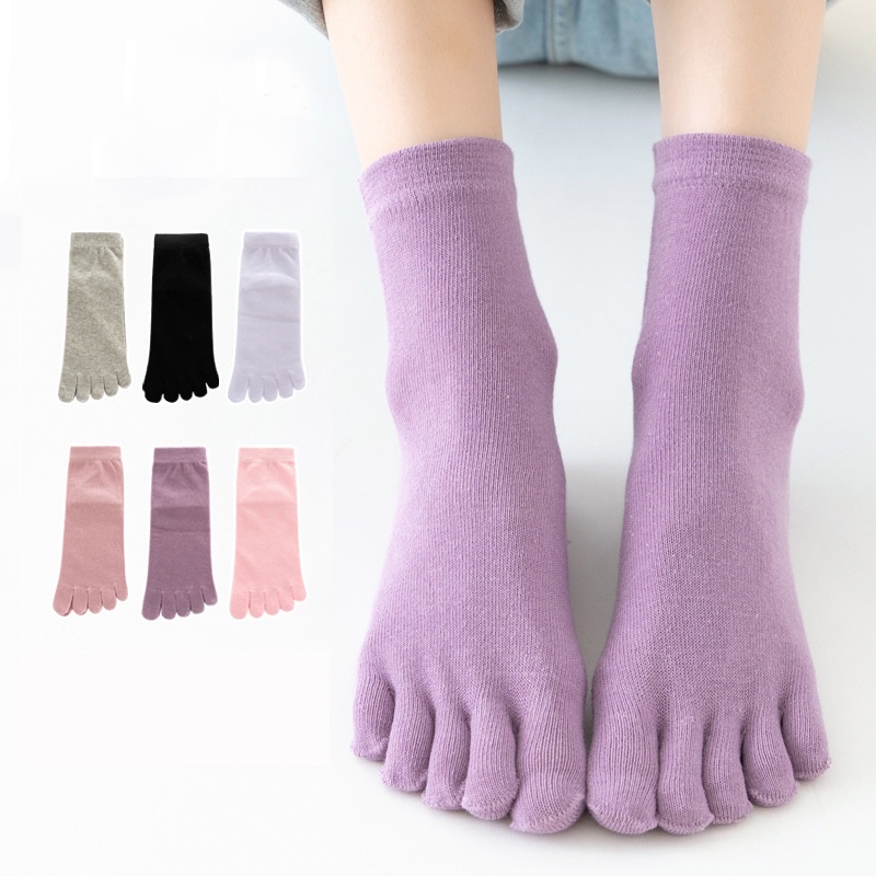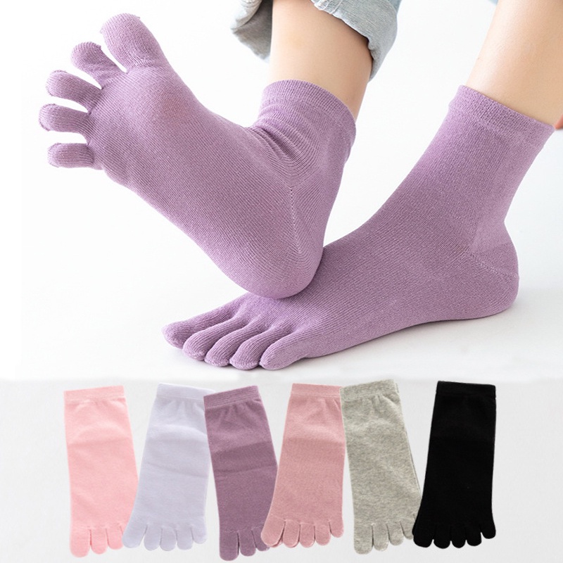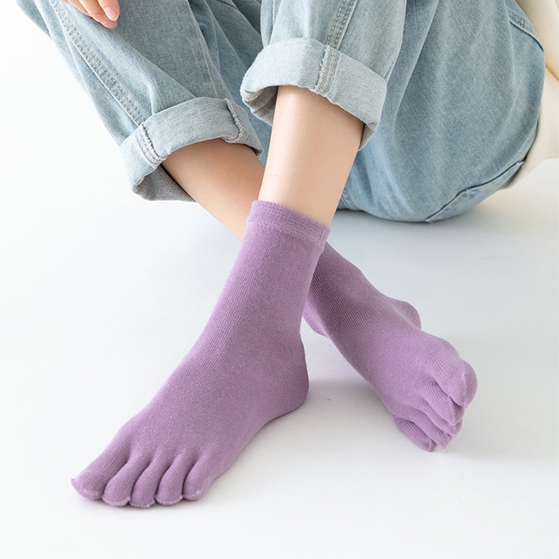 Women's Cotton Summer Sweat Absorbing Mid-Tube Split Toe Socks Breathable Five Fingers Toe Socks