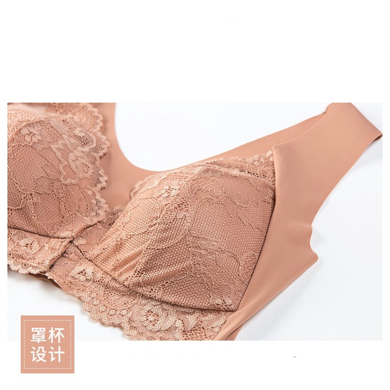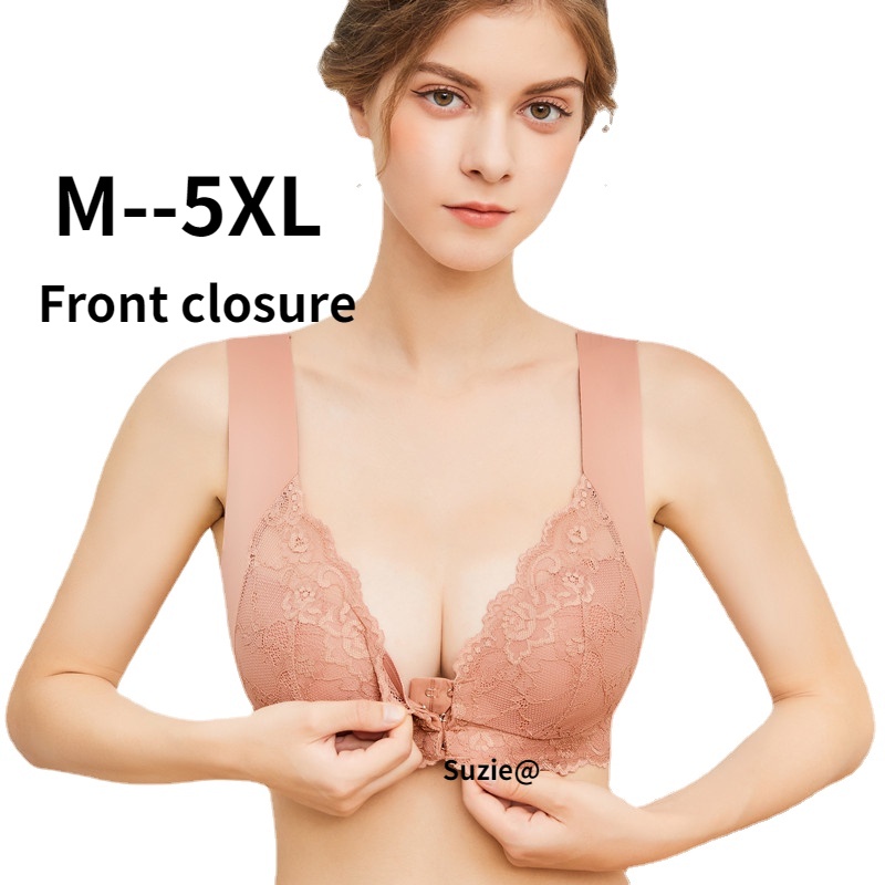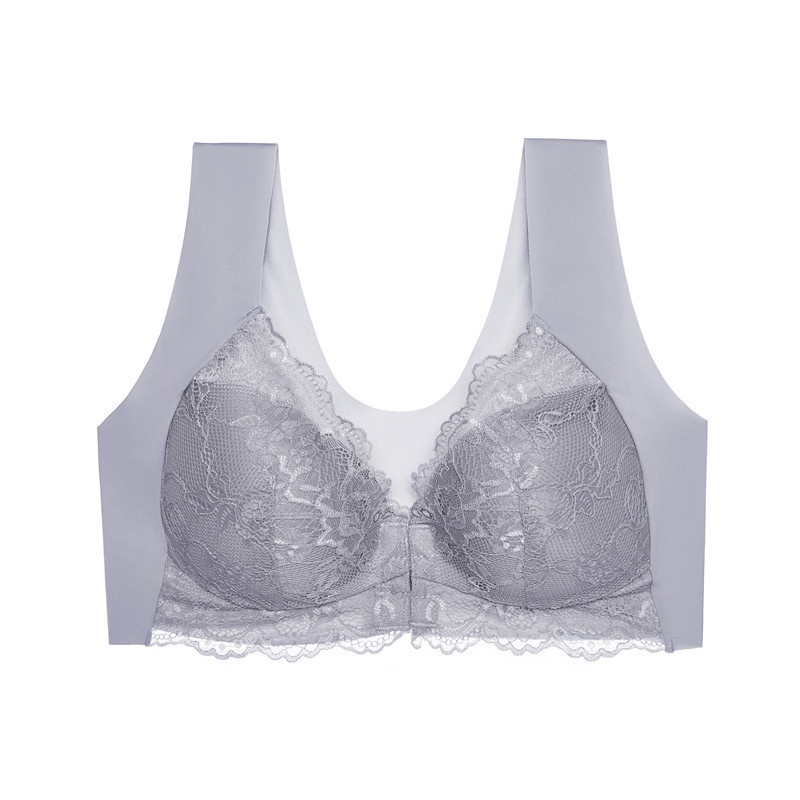Women's Plus size front closure push up buckle thin bra lace sexy wireless gathered non-slip seamless vest beauty back ladies underwear