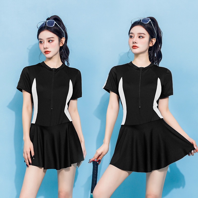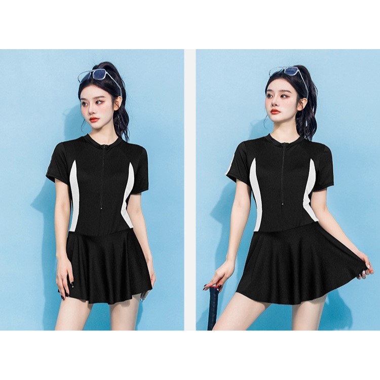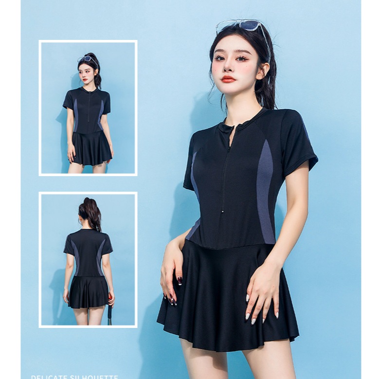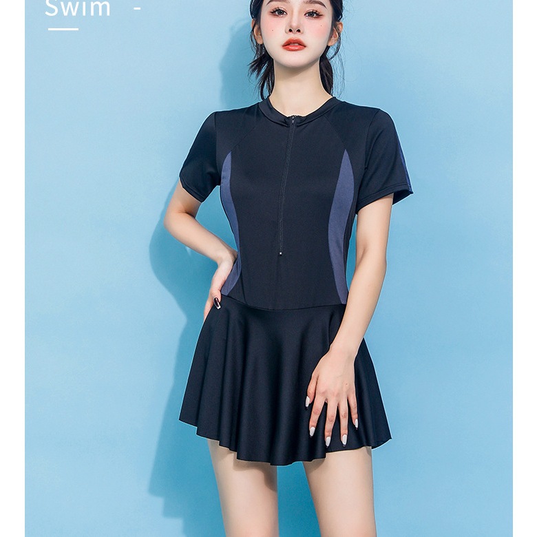 Women's Swimsuits 028499 | Korean style one piece front zipper women's swimwear