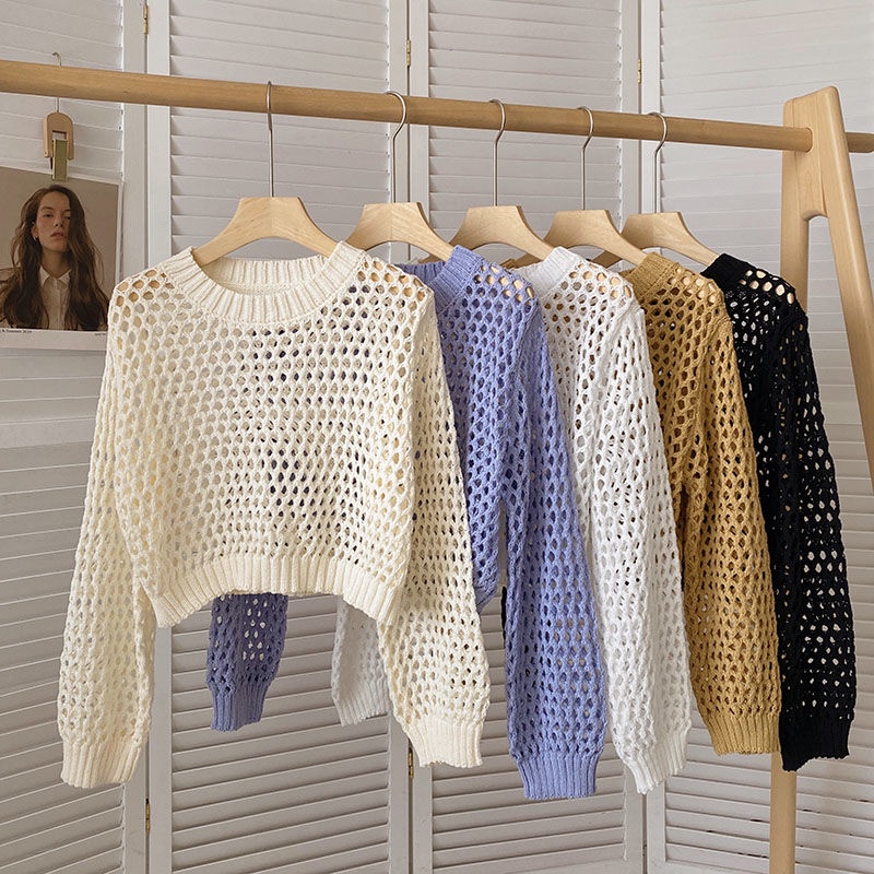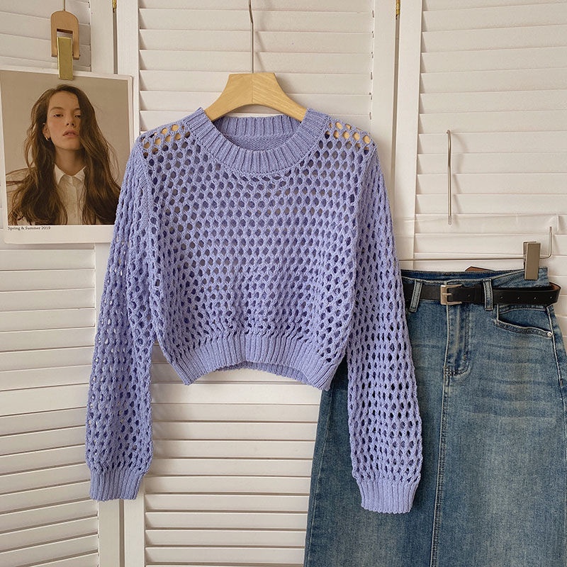 Women's Top Hollow Fashion Loose Knitted Mesh T-Shirt