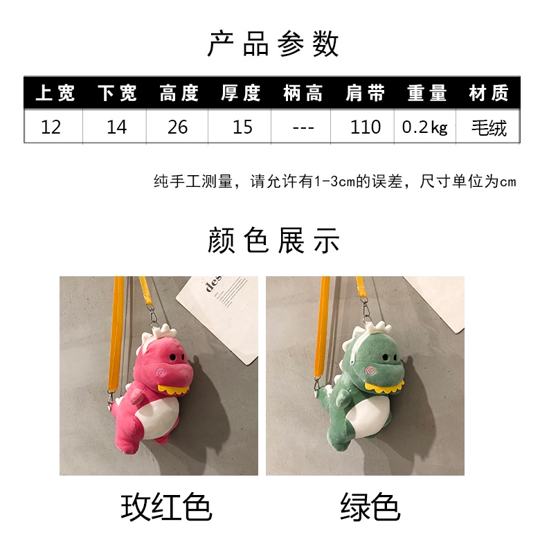 Women Plush Bag Female Cartoon Bag Cute Dinosaur Messenger Bag