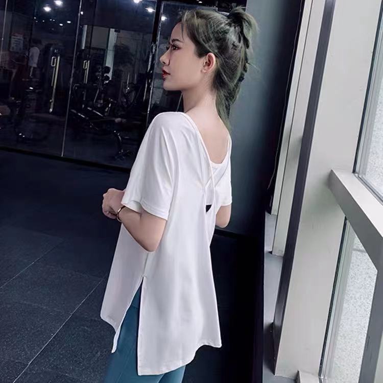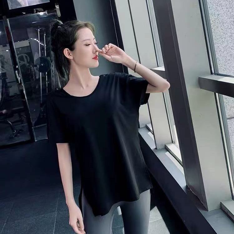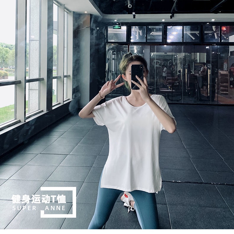 Women Sexy Yoga T-shirt Loose Fit Quick-dry Fitness Short-sleeved Thin Sports Blouse Top