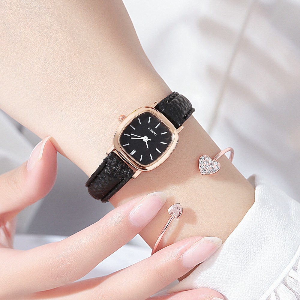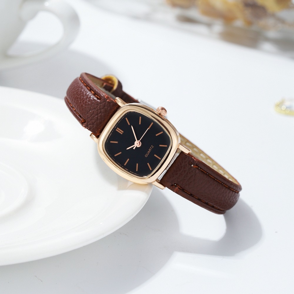 Women Small Square Dial Casual Quartz Watch with Leather Strap