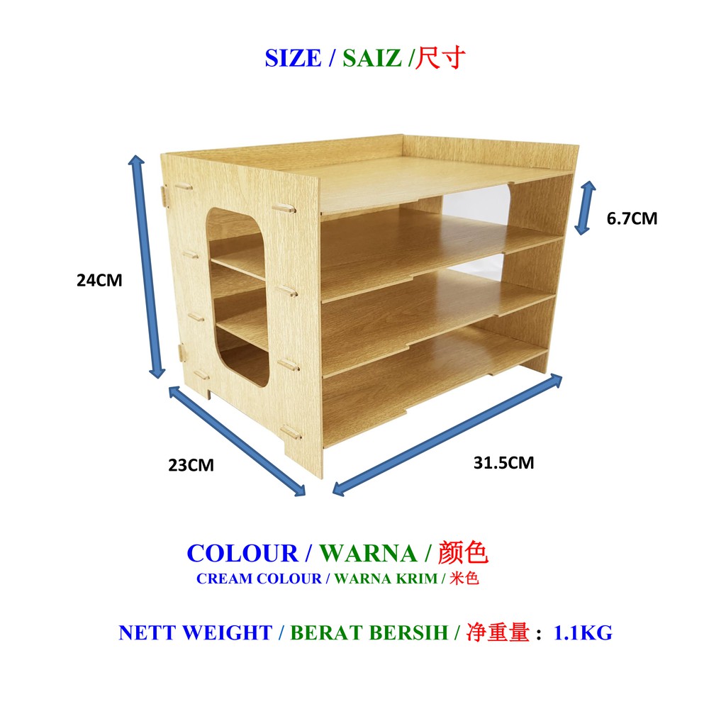 Wooden 4 level desktop rack Wooden book rack Wooden 4 level table rack Document rack rak buku kayu Rak meja Rak kayu Wooden shelf