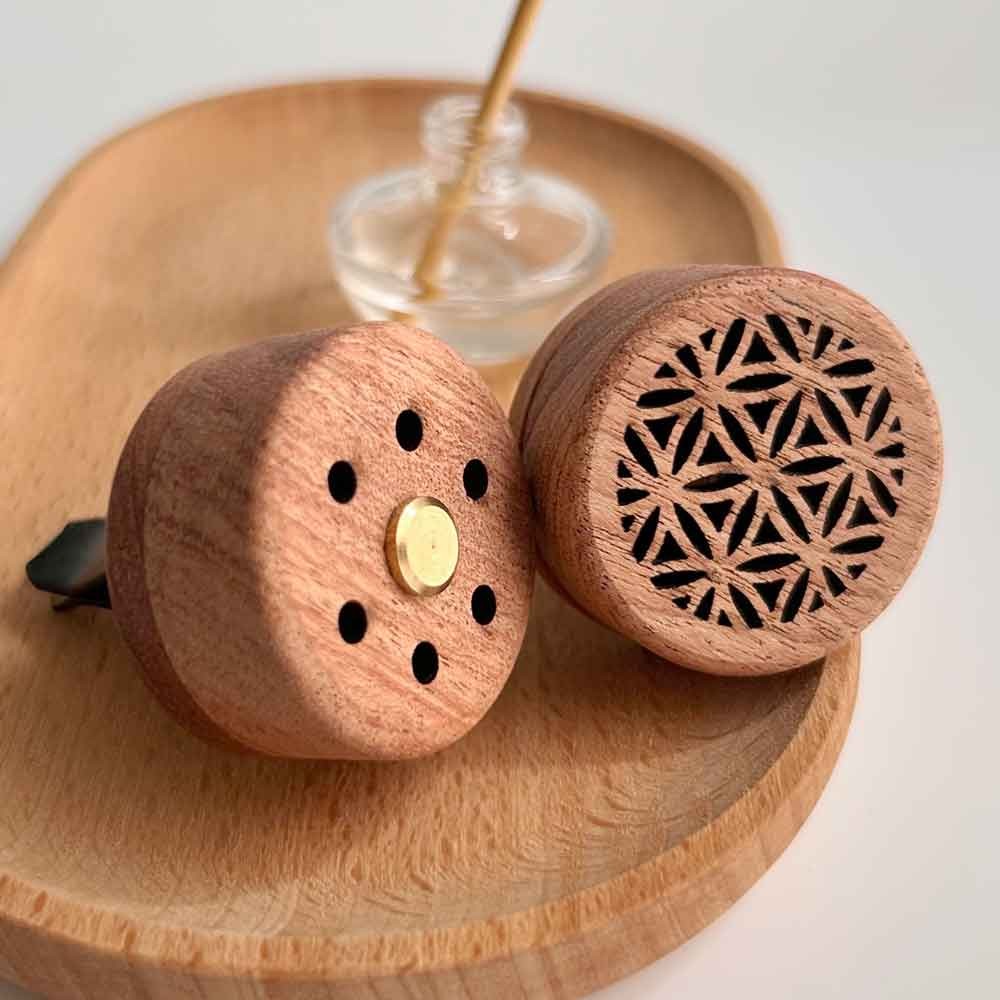 Wooden Car Essential Oil Diffuser with Vent Clip Lava Stone Aromatherapy Wood Car Diffuser