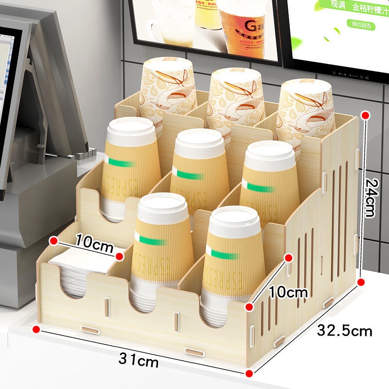Wooden Cup Holder Cup Puller Bar Storage Pipette Stand Disposable Paper Cup Holder Commercial