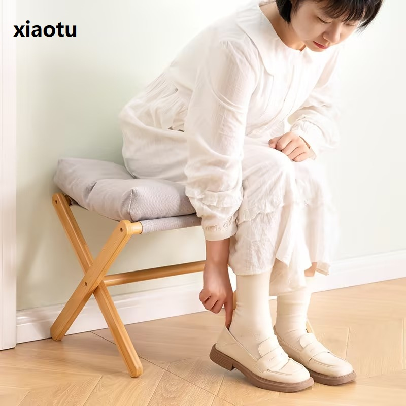 Wooden Foot Stool, Rectangular Sofa Footrest Soft Seat Pouf Ottoman for Living Room, Couch, Desk, Bedroom