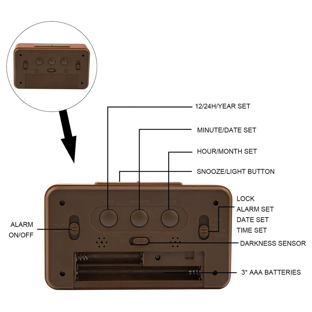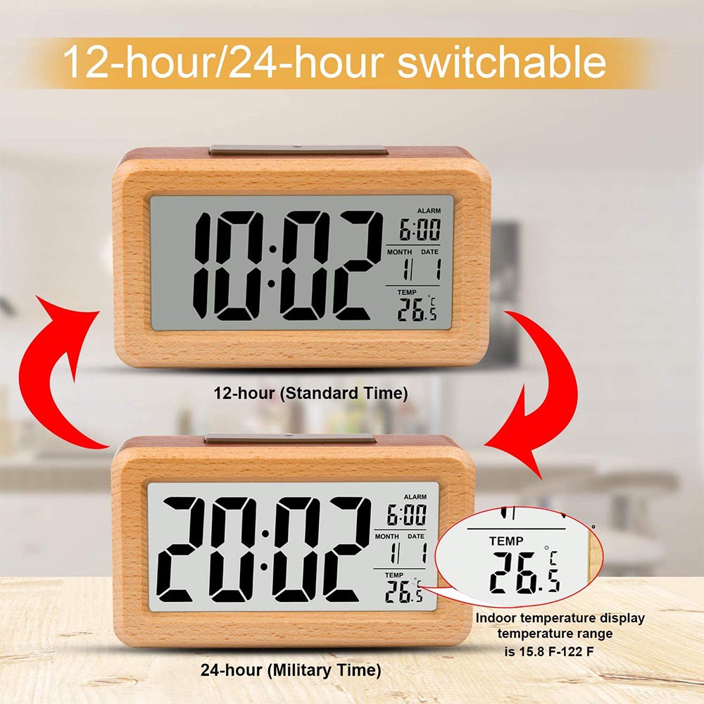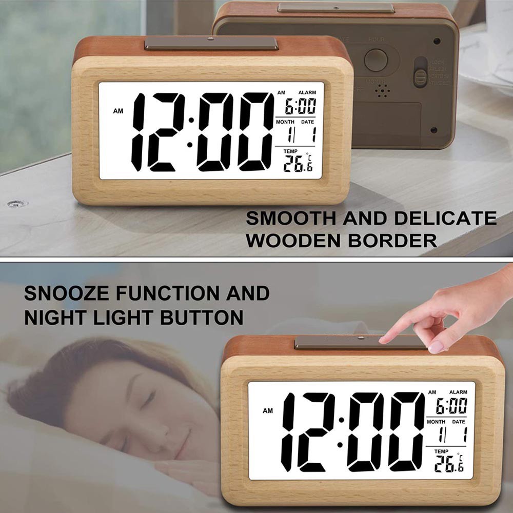 Wooden Large Led Digital Alarm Clock, Smart Sensor Night Light With Snooze Function, Date, Temperature, 12/24 Hours Switch, Easy To Use, Solid Wood Shel