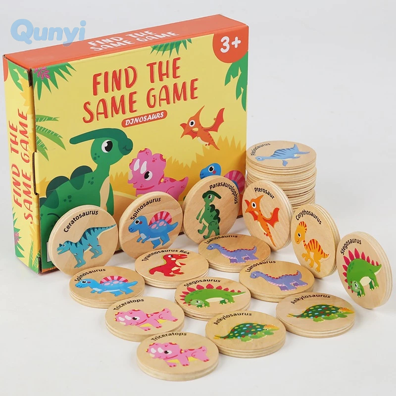 Wooden Match Memory Game for Kids, 24Pc Memory Matching Cards , Educational Memory Matching Game for Pre-Kindergarten Early Learning Development Kids-Dinosaur