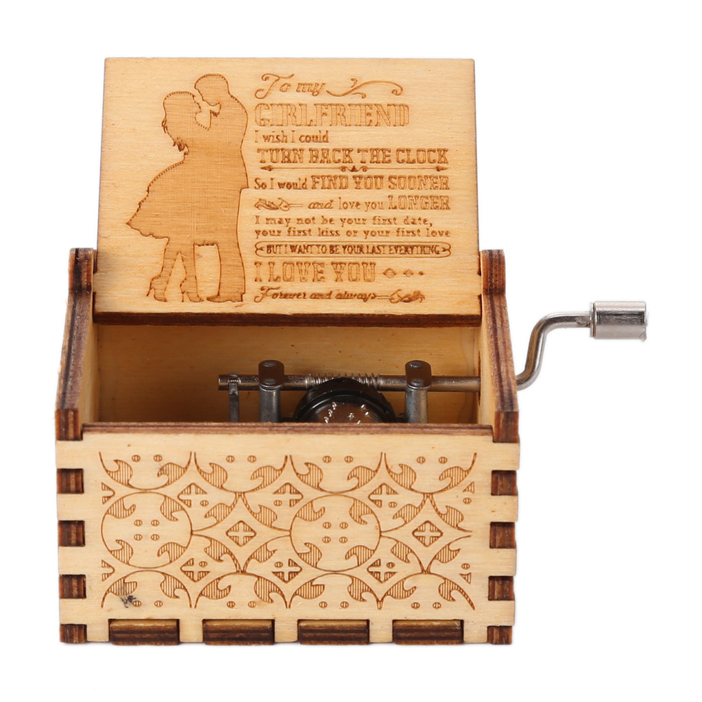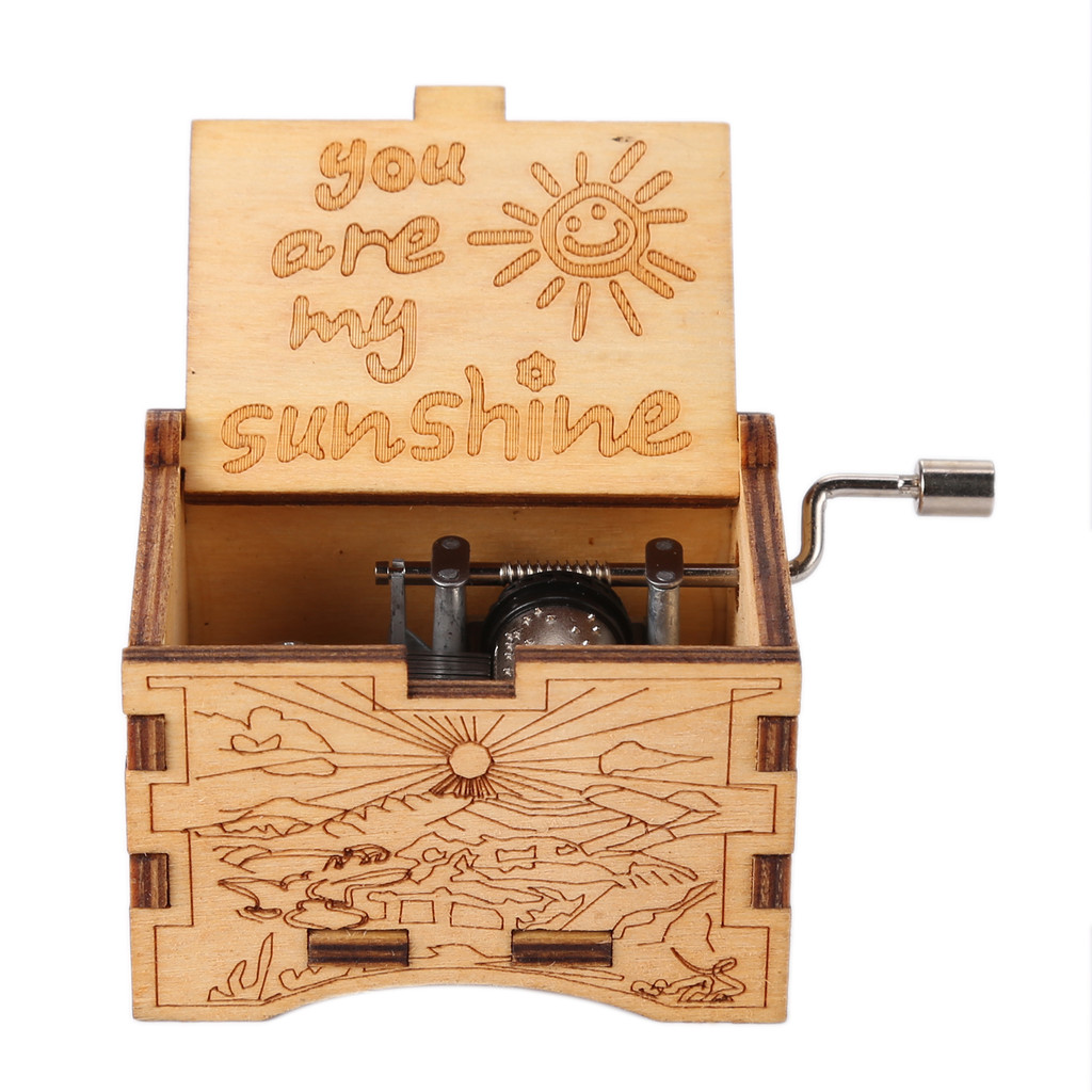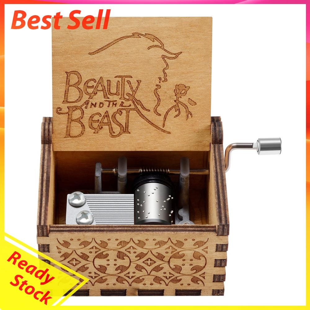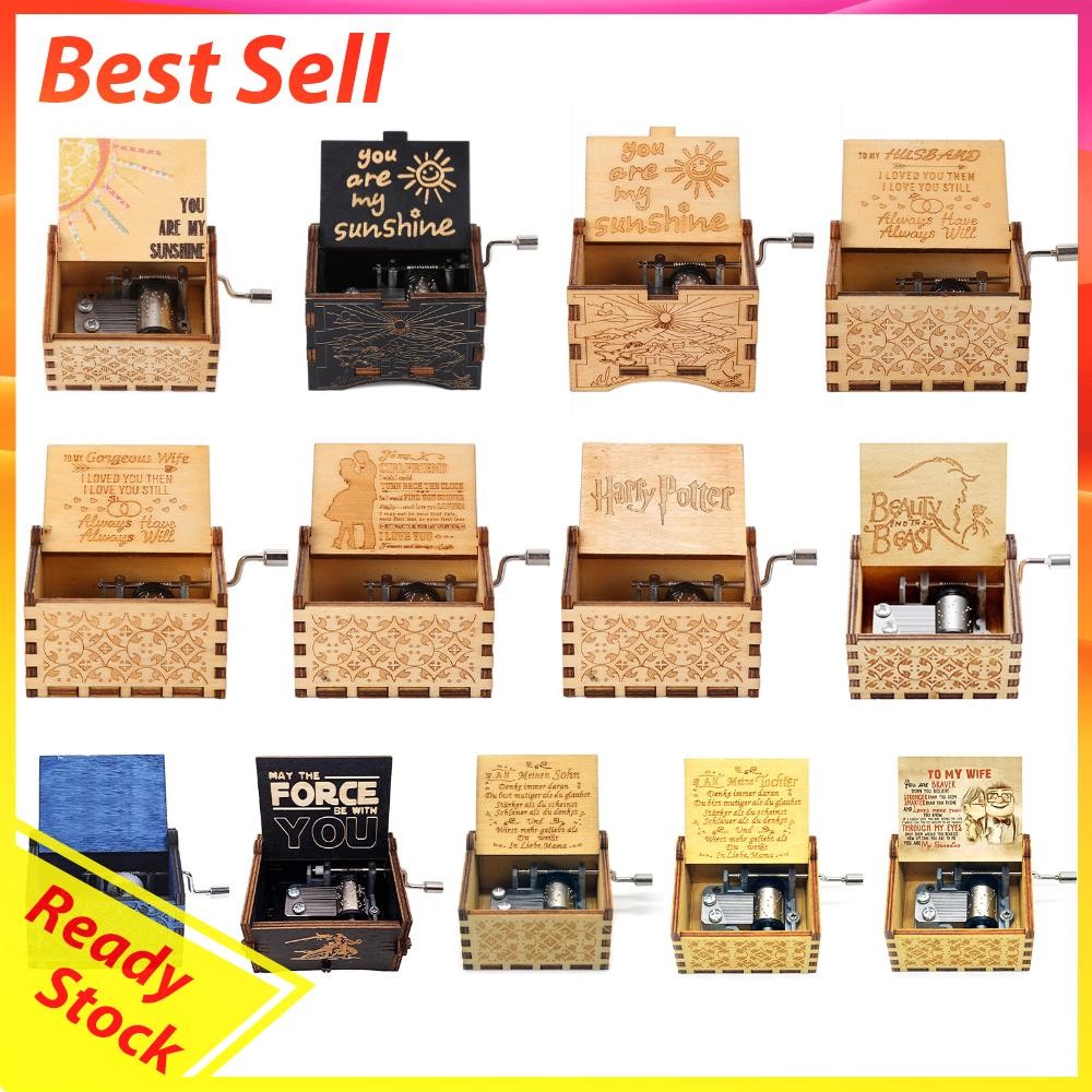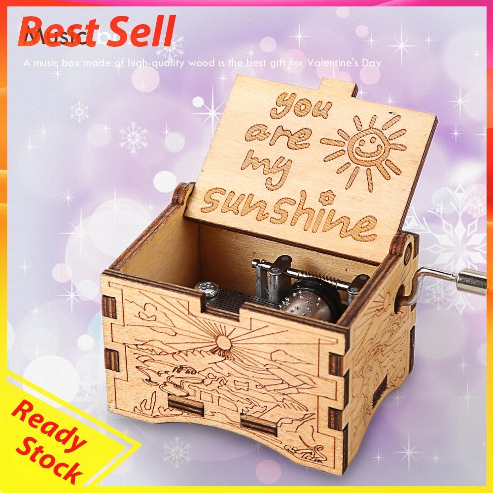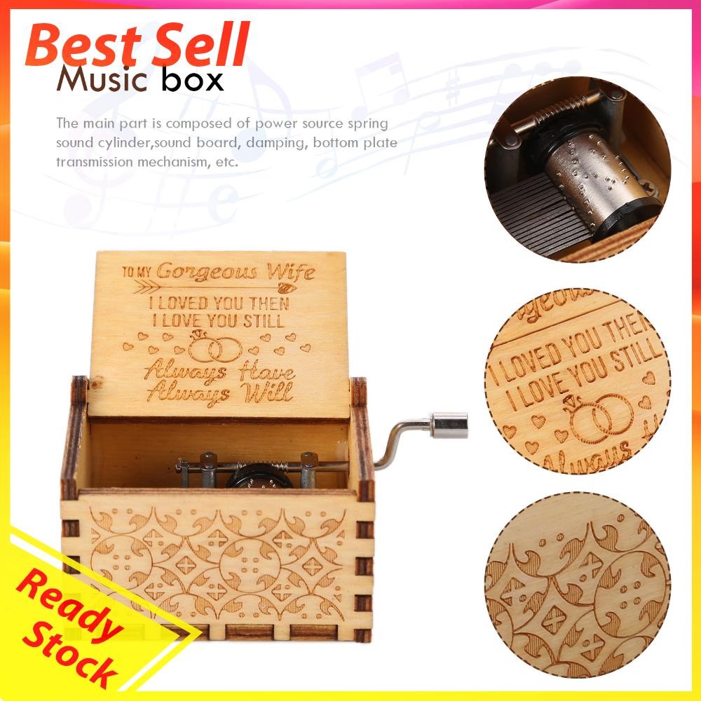Wooden Music Box Retro Hand Crank Engraved Musical Box for Souvenirs Decorations