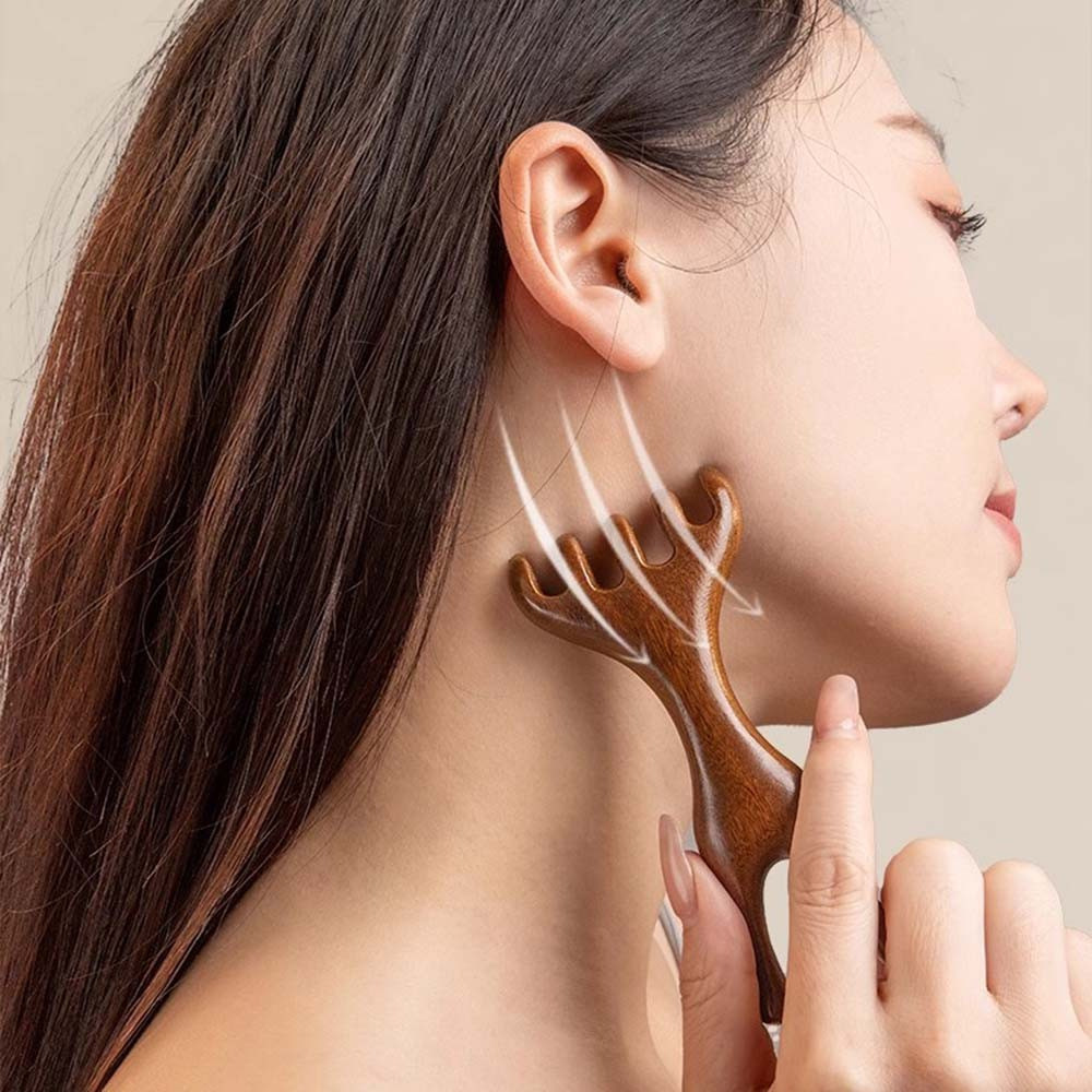Wooden Scalp Massage Comb - Deer Antler Acupuncture Comb - Double-End, Wide Tooth - Help Blood Circulation - Sandalwood Head Comb - Body Massager Tool