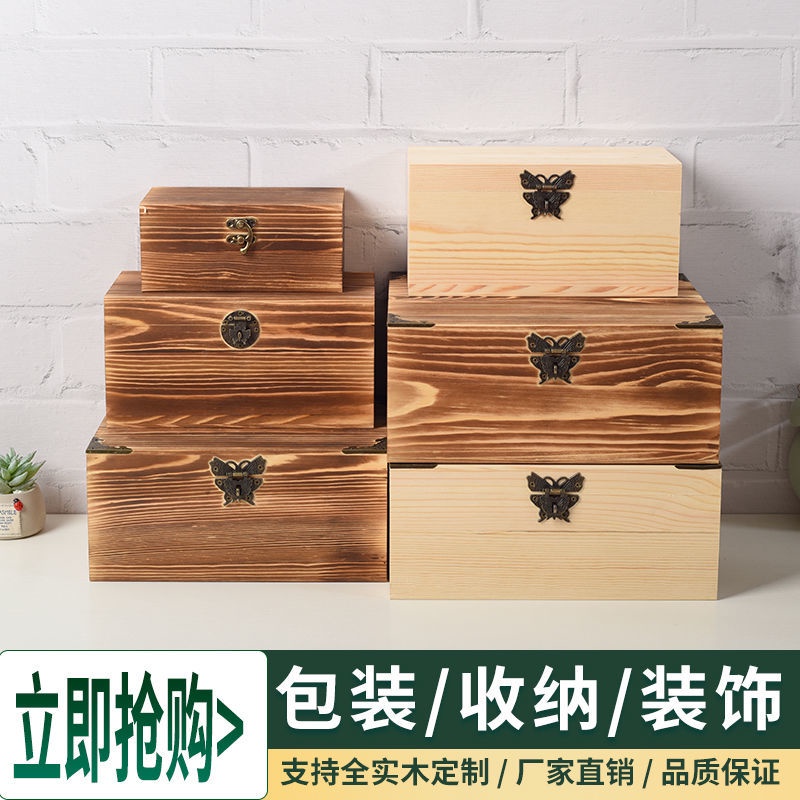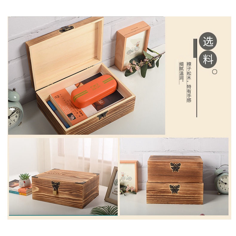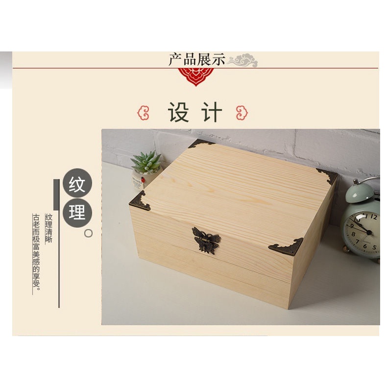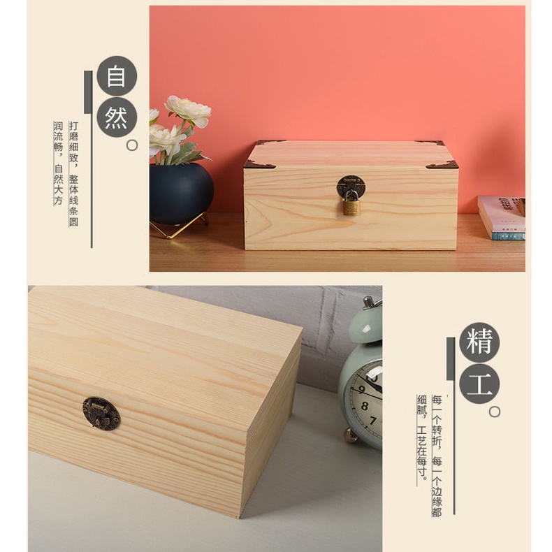 Wooden Storage Box Certificate Box Desktop Storage Rectangular Box with Lock Wooden Packing Box Wooden Box Customizable-Traditional Sewing Storage Box