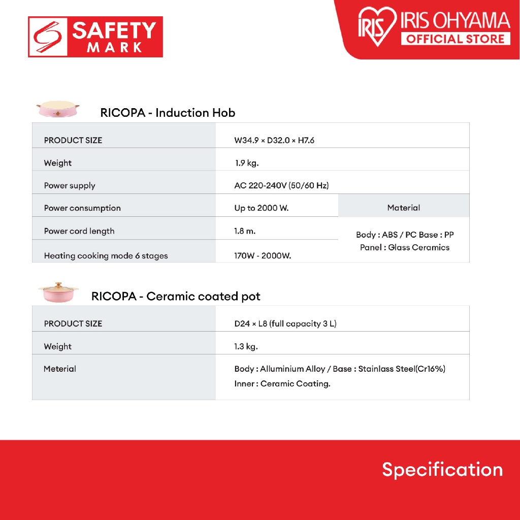 IRIS OHYAMA RICOPA IH Induction Cooker Hot Pot Set (IHL-R14) & Pot only (ITP-24), Ceramic