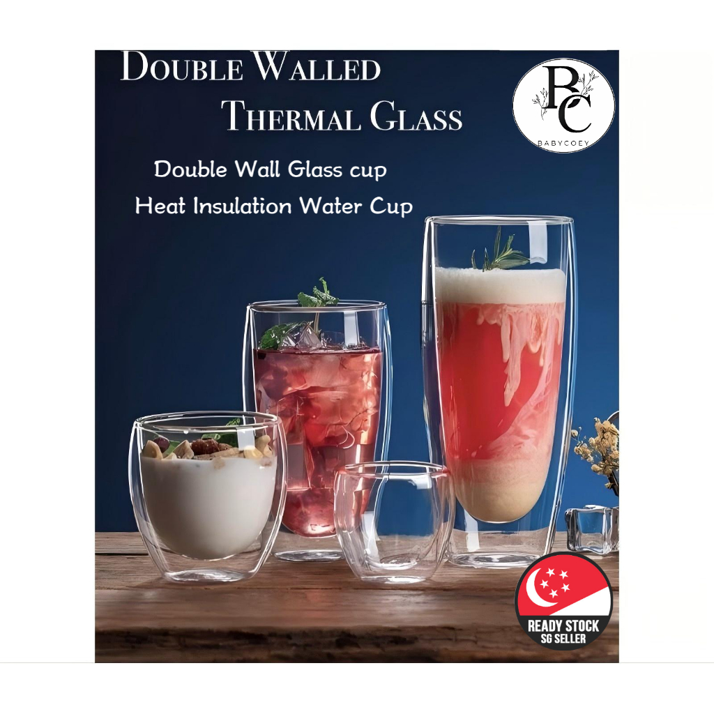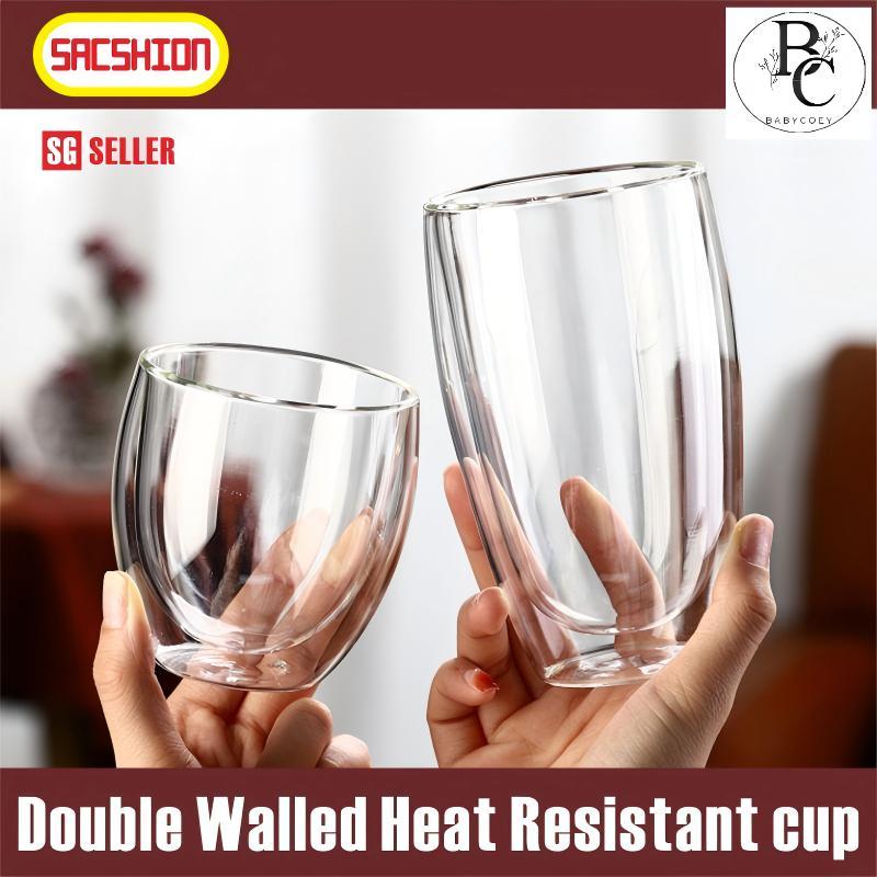 [SG]Double Wall Glass cup Heat Insulation Water Cup with Handle 80ml/250ml/350ml/450ml