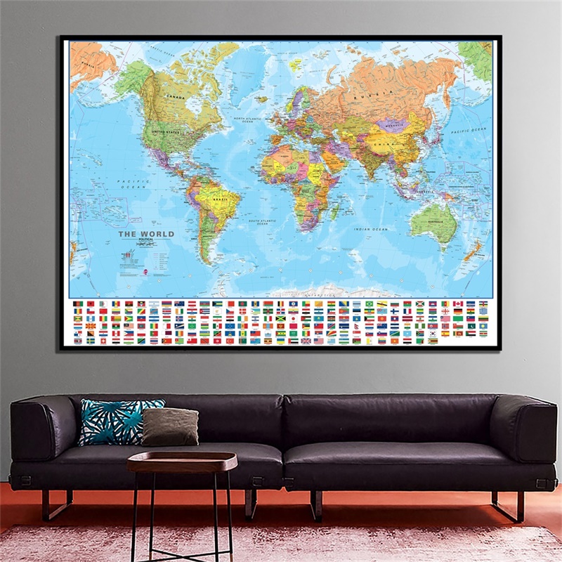 World Map Large Poster Prints Wall Hanging Art Vinyl and Non-woven Fabric Background Cloth Wall Decor 90*60cm