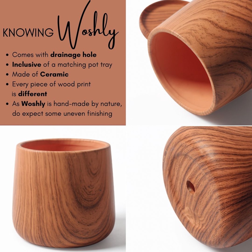 Woshly Wood Print Ceramic Flower Plant Pot | Indoor flower pot | Gardening | Home Decoration Flower Pot | Speckled Space